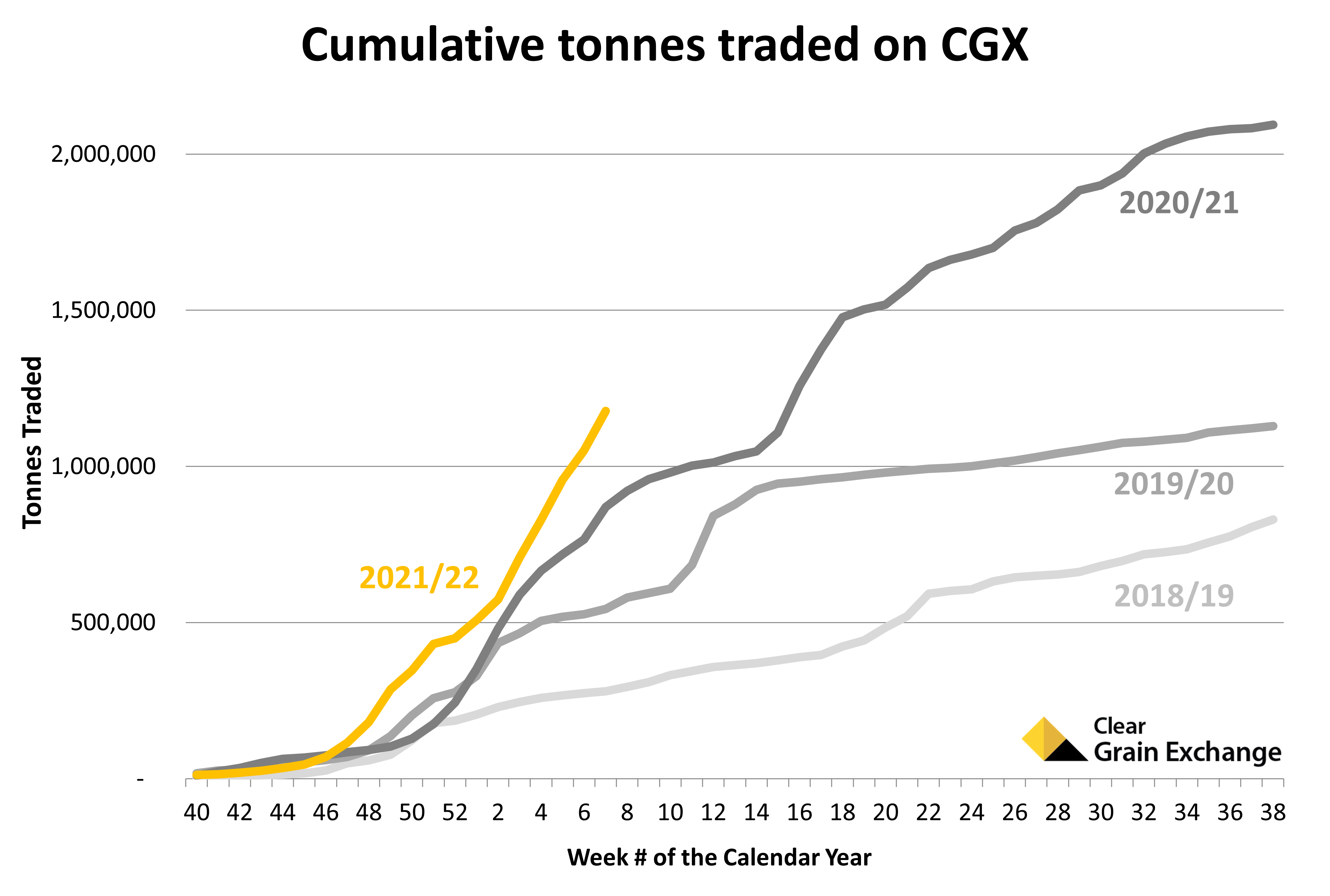 Clear Grain Exchange (CGX) had another record day of trade volume on Monday 14th February with 102,253 tonnes of Australian grain trading worth A$38 million. This smashed the previous record of 74,291 tonnes set just 10 days earlier.