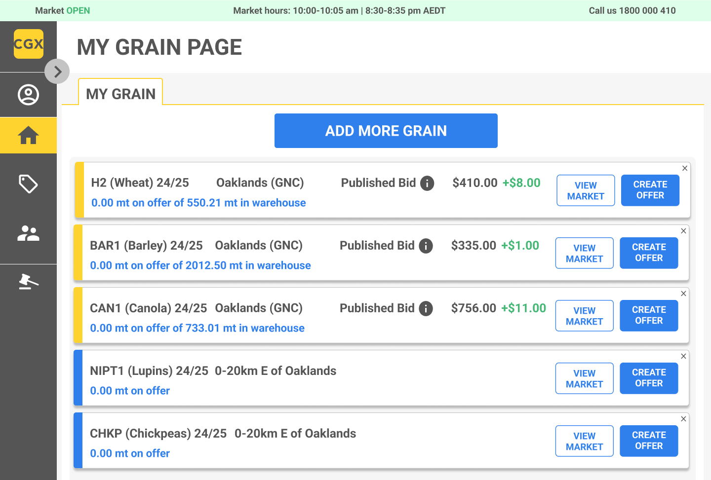 You can personalise your CGX account to show prices of grain you're likley to produce this harvest