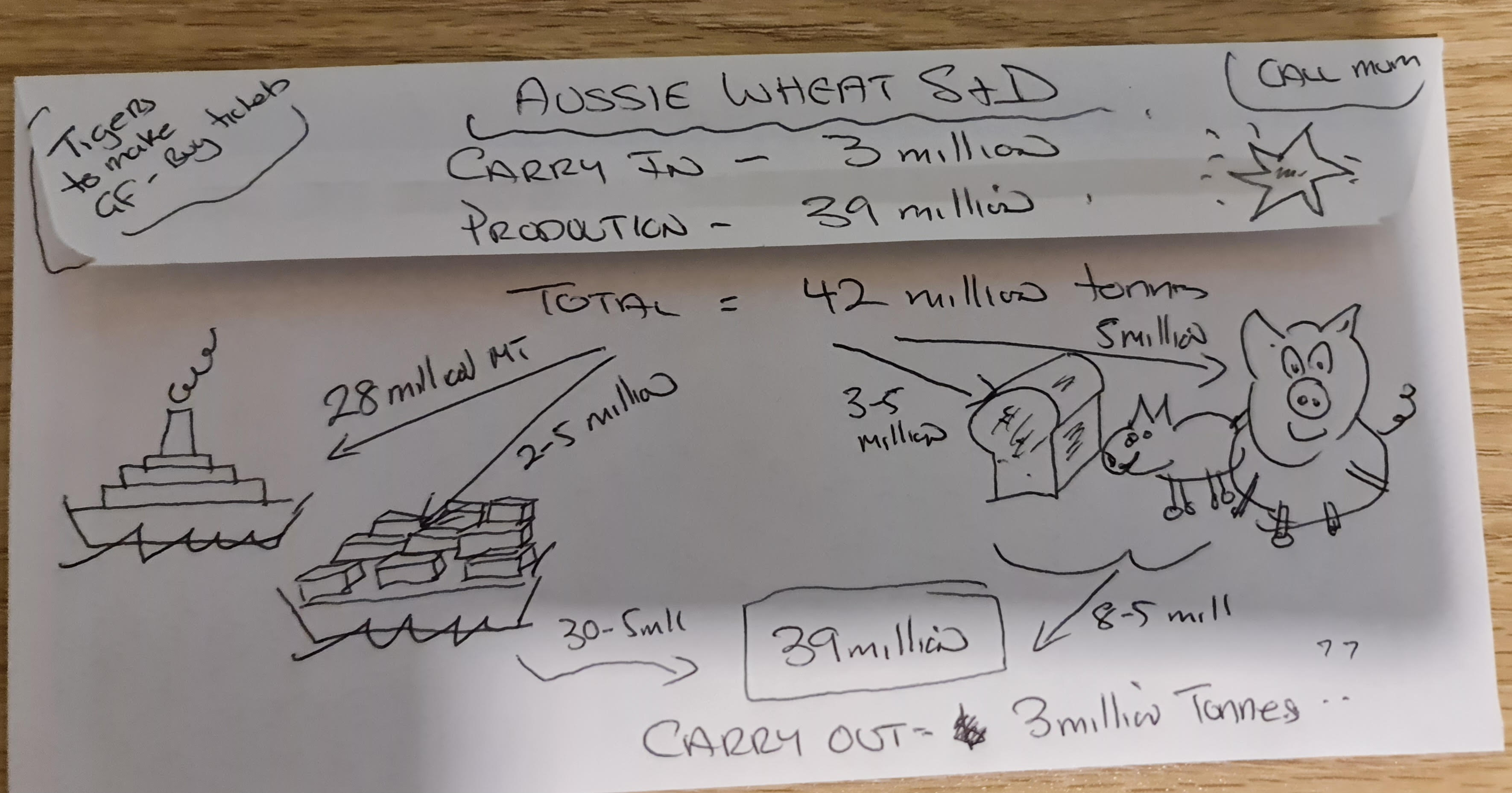 Also, if the BOM are correct and we have a drier finish this year, and produce a lower crop, things will get interesting next year.