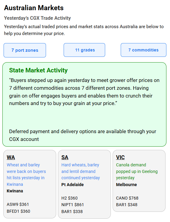 Australia’s independent grain report—designed to help support your pricing decisions before the market opens at 10:00am AEST. If you need to change your offer price, simply edit it before market open.
