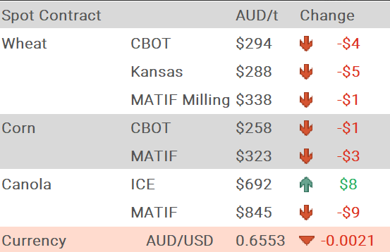 Local cereal markets are flat with the odd short being quickly covered. A delayed harvest might see some pricing opportunities with end users with skinny coverage being exposed (old crop opportunity). Canola has gained $10-30/t this week on a firming in the global oilseed complex with news that China will resume US soybean purchases. India further restricting pulse imports is not a good sign for Australian pulse values.