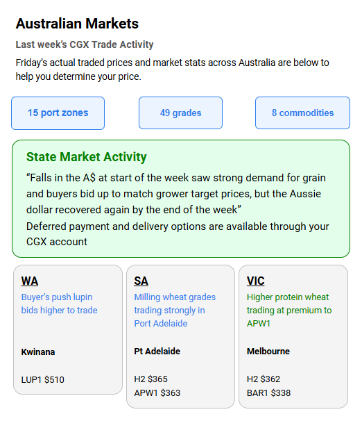 Australia’s independent grain report—designed to help support your pricing decisions before the market opens at 10:00am AEST. If you need to change your offer price, simply edit it before market open.