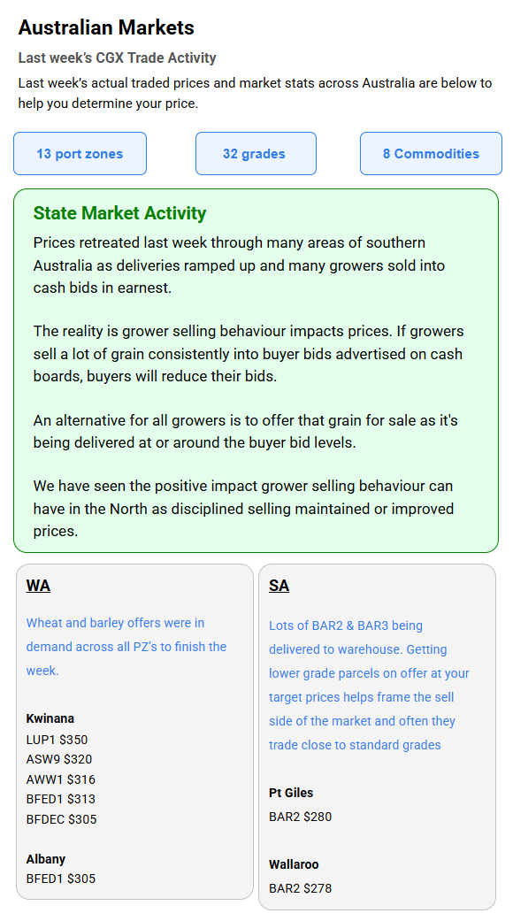 Australia’s independent grain report—designed to help support your pricing decisions before the market opens at 10:00am AEST. If you need to change your offer price, simply edit it before market open.