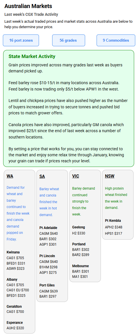 Australia’s independent grain report—designed to help support your pricing decisions before the market opens at 10:00am AEST. If you need to change your offer price, simply edit it before market open.
