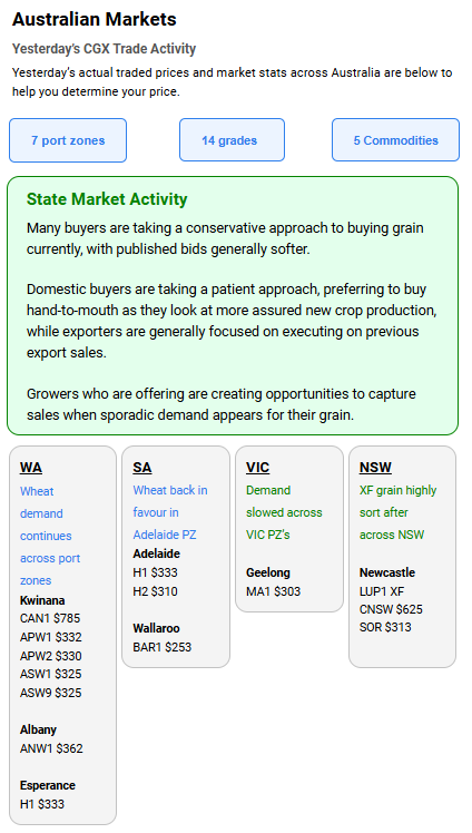 Australia’s independent grain report—designed to help support your pricing decisions before the market opens at 10:00am AEST. If you need to change your offer price, simply edit it before market open.