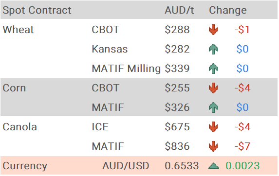 The $A rallying back into the mid-65USc’s will make selling cereals a little more difficult.
