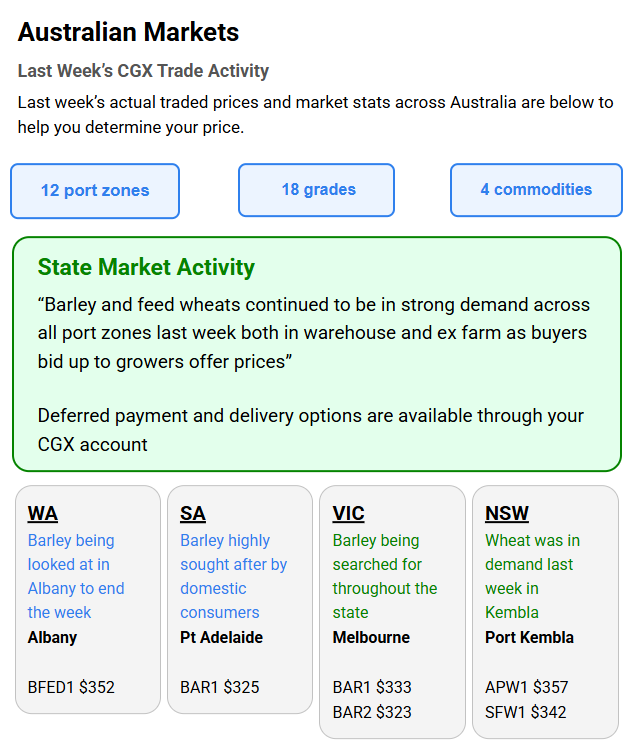 Australia’s independent grain report—designed to help support your pricing decisions before the market opens at 10:00am AEST. If you need to change your offer price, simply edit it before market open.