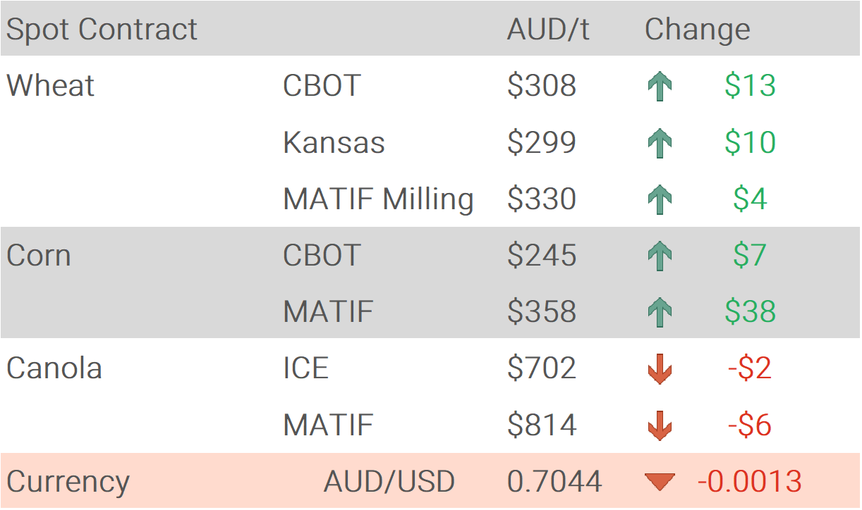 Should be a lively week. I would be putting some grain on offer for sale today at least $10/t above recent trades and let the market do its work.