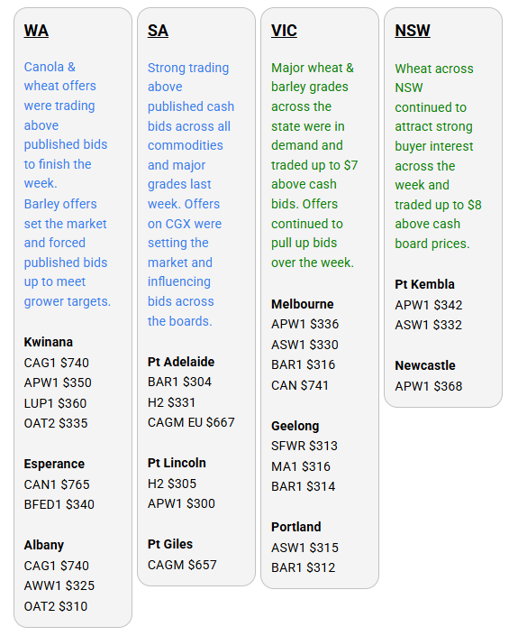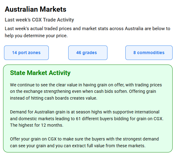 Australia’s independent grain report—designed to help support your pricing decisions before the market opens at 10:00am AEST. If you need to change your offer price, simply edit it before market open.