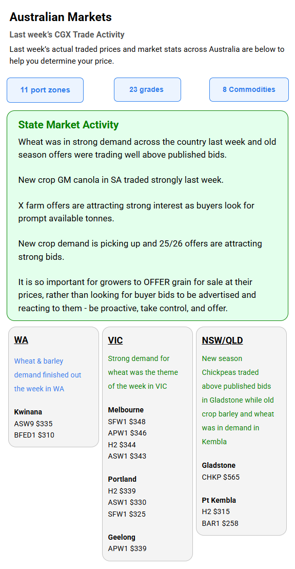 Australia’s independent grain report—designed to help support your pricing decisions before the market opens at 10:00am AEST. If you need to change your offer price, simply edit it before market open.