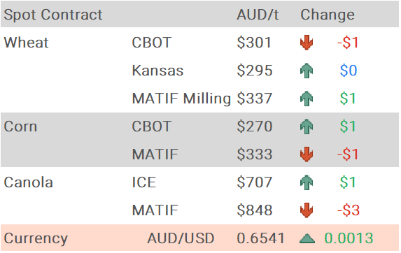 Nothing to add on the local grain market front. It's tough going without any support from export markets. There is still demand there but it’s a buyers’ market. Northern markets have held firm with any shorts needing to pay a bit more to entice grain out of store, while southern bids eased a little with hot and dryer weather allowing harvest to progress through southern NSW.