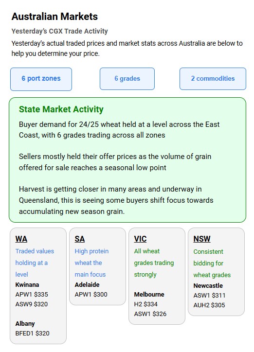 Australia’s independent grain report—designed to help support your pricing decisions before the market opens at 10:00am AEST. If you need to change your offer price, simply edit it before market open.