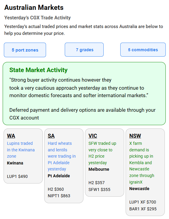 Australia’s independent grain report—designed to help support your pricing decisions before the market opens at 10:00am AEST. If you need to change your offer price, simply edit it before market open.