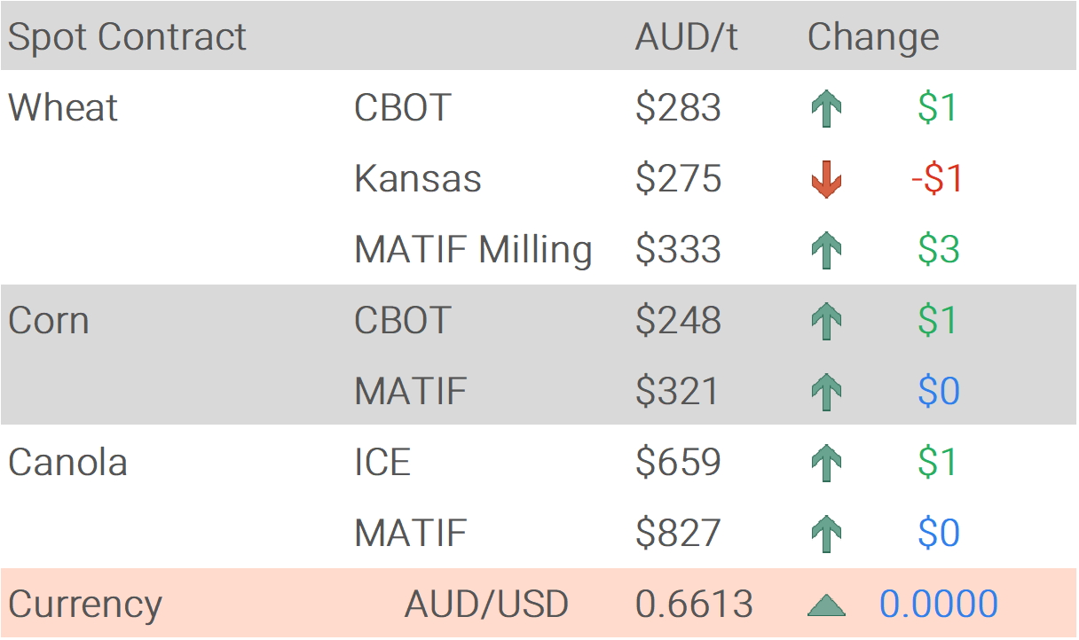 There has been some firming in local delivered feed grain markets on slow grower selling as attention turns to harvest preparations. A spell of hot weather early next week will bring in the QLD crop. Nth NSW and growers in the Geraldton zone in WA are still a couple of weeks off.