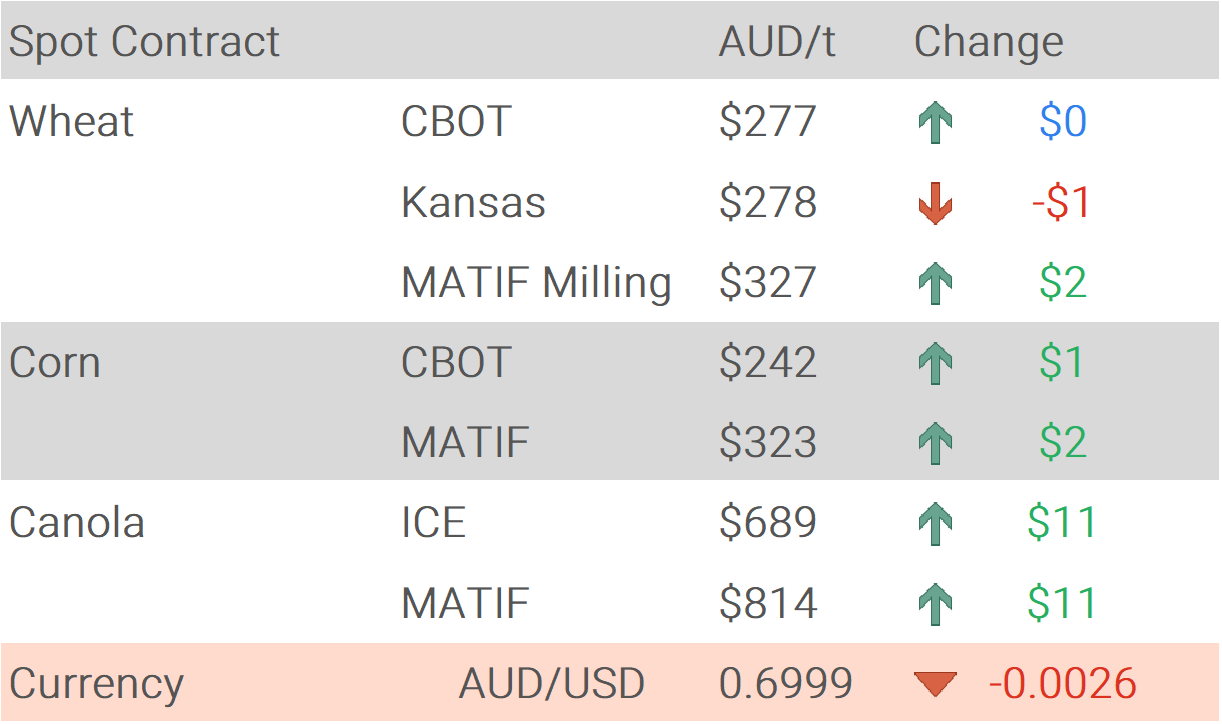 Another solid day on CGX yesterday with the feature lentils (better than $640/t) into Ardrossan SA and barley ($325/t) and canola ($780/t) in Albany WA.