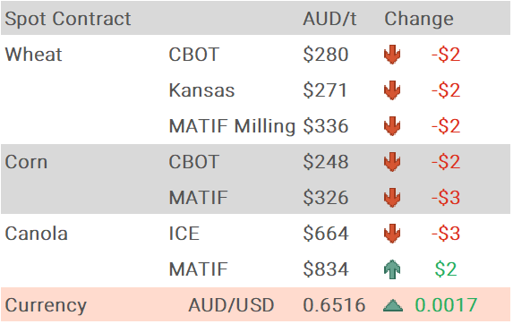 Barley markets are a touch firmer, but bids are still hampered by lesser demand (compared to wheat) and expectations of a large harvest in Queensland and northern NSW. Reports of some chunky barley yields of 5-6t/ha in border regions of NSW/QLD now that harvest is in full swing with yields now “above average to exceptional” after a few quality issues with some frosting in early harvest deliveries.