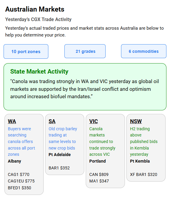 Australia’s independent grain report—designed to help support your pricing decisions before the market opens at 10:00am AEST. If you need to change your offer price, simply edit it before market open.