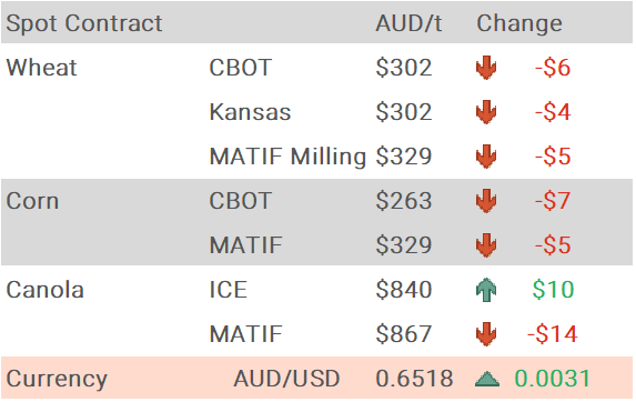 The only thing to crow about is canola which has jumped around $25/t on old and new crop despite rain helping the canola crop prospects in southern farming areas.