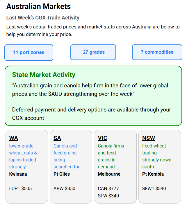 Australia’s independent grain report—designed to help support your pricing decisions before the market opens at 10:00am AEST. If you need to change your offer price, simply edit it before market open.