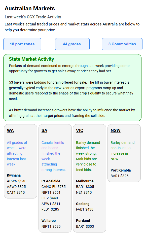 Australia’s independent grain report—designed to help support your pricing decisions before the market opens at 10:00am AEST. If you need to change your offer price, simply edit it before market open.