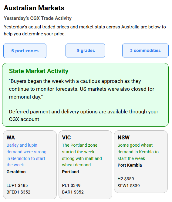 Australia’s independent grain report—designed to help support your pricing decisions before the market opens at 10:00am AEST. If you need to change your offer price, simply edit it before market open.