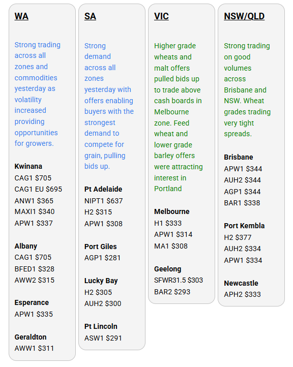 Australia’s independent grain report—designed to help support your pricing decisions before the market opens at 10:00am AEST. If you need to change your offer price, simply edit it before market open.
