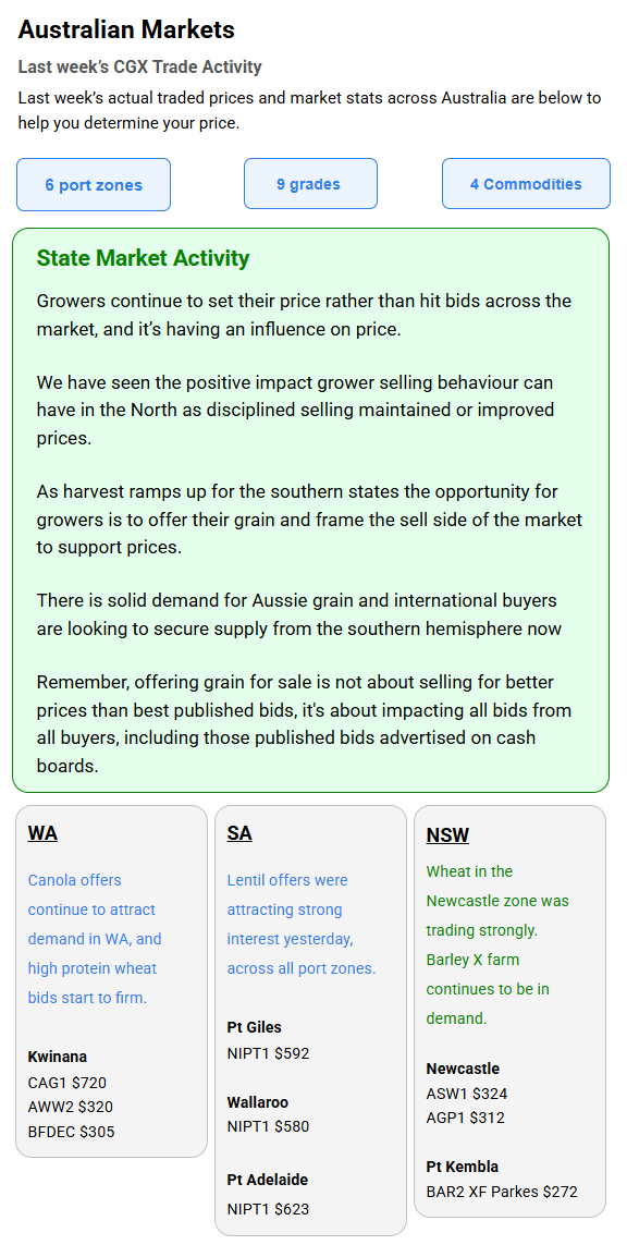 Australia’s independent grain report—designed to help support your pricing decisions before the market opens at 10:00am AEST. If you need to change your offer price, simply edit it before market open.