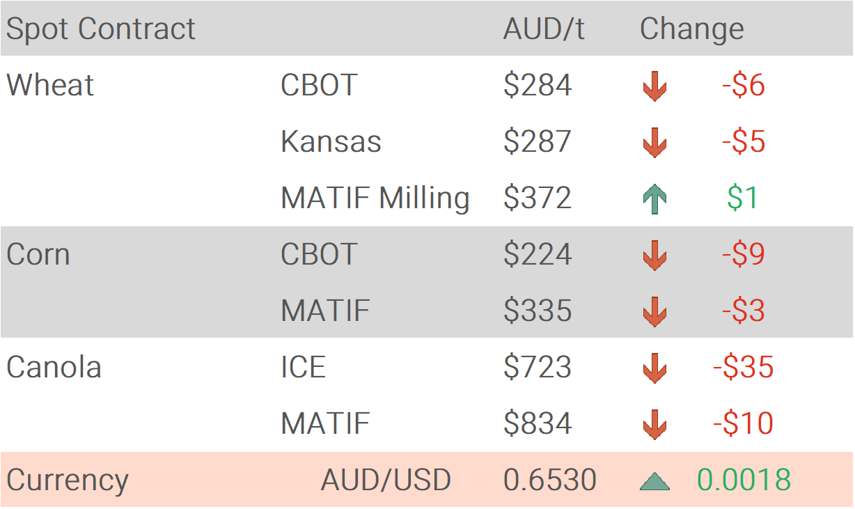 Plenty of news to digest and it will be interesting how local markets react. There seems to be an opportunity for some old crop sales given the much slower start to the season in Russia and farmers holding out for better prices. But futures markets are beholden to increased corn stock projections and plentiful supplies of US wheat. Nothing I’m picking up is suggesting that export demand for Australian wheat has lifted enough to shake the status quo. Canola will be an interesting watch.