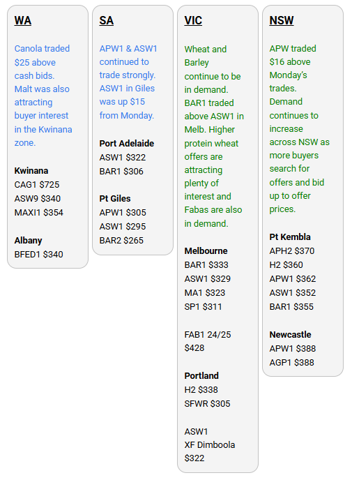 Australia’s independent grain report—designed to help support your pricing decisions before the market opens at 10:00am AEST. If you need to change your offer price, simply edit it before market open.