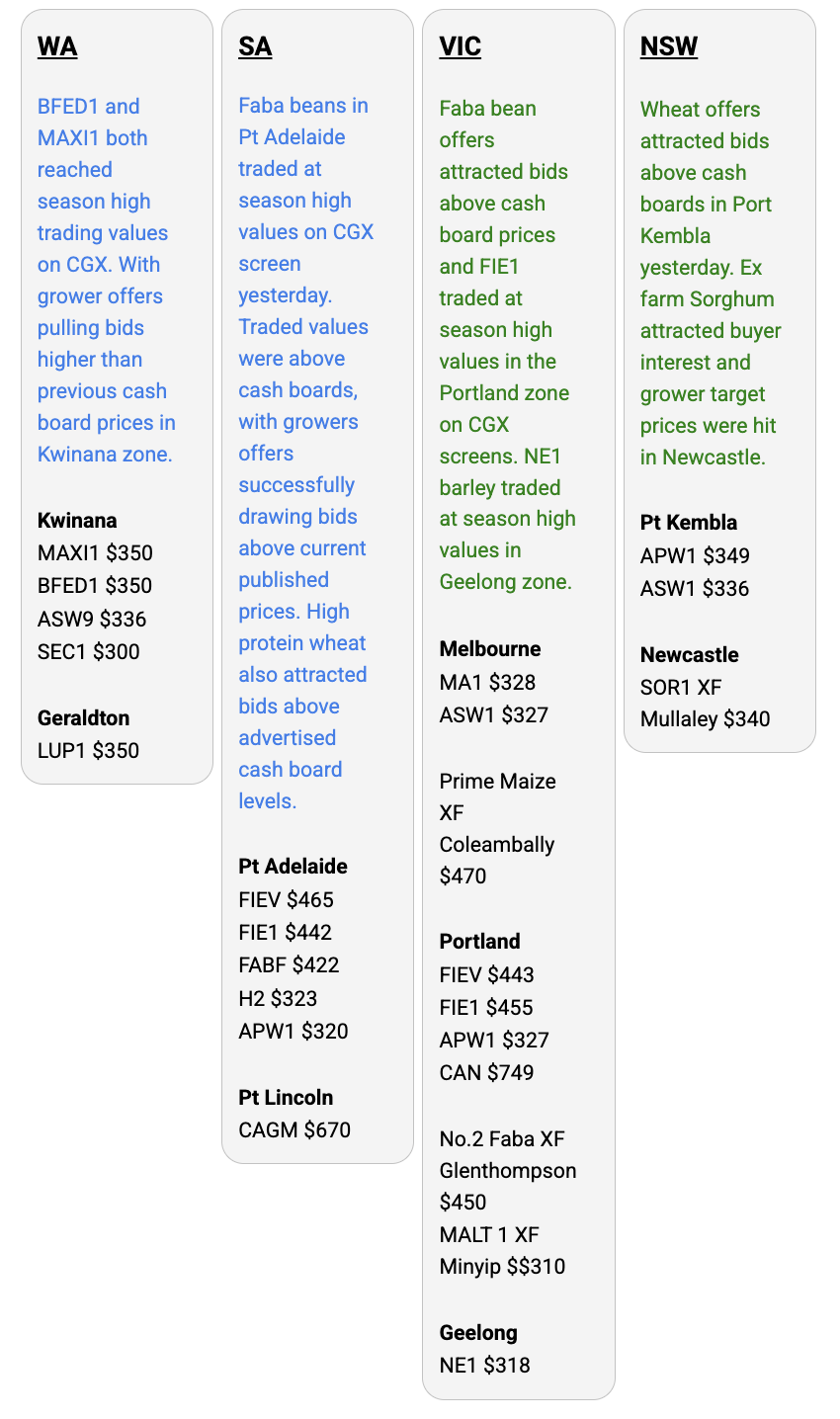 Australia’s independent grain report—designed to help support your pricing decisions before the market opens at 10:00am AEST. If you need to change your offer price, simply edit it before market open.