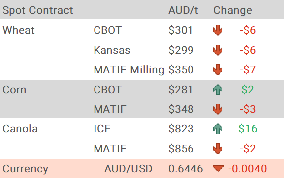 Rain in areas of need are allaying wheat crop concerns which is seeing some of the risk premium that had been built into prices disappear.