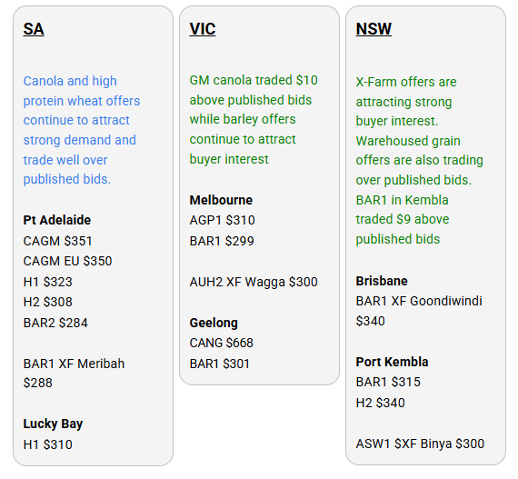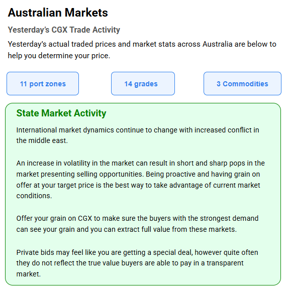 Australia’s independent grain report—designed to help support your pricing decisions before the market opens at 10:00am AEST. If you need to change your offer price, simply edit it before market open.
