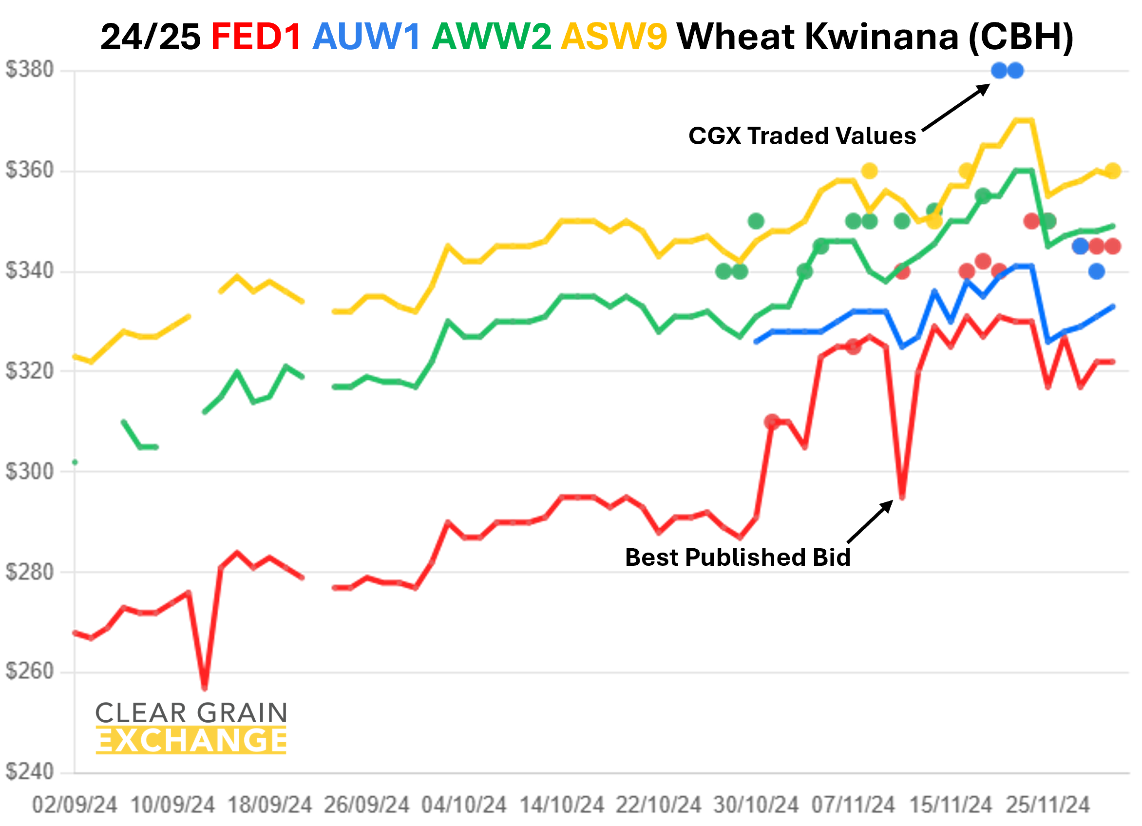 Growers can offer their grain up for sale at a price, and/or check Clear Grain Exchange (CGX) which has had firm bids that growers can sell into above cash at site prices.