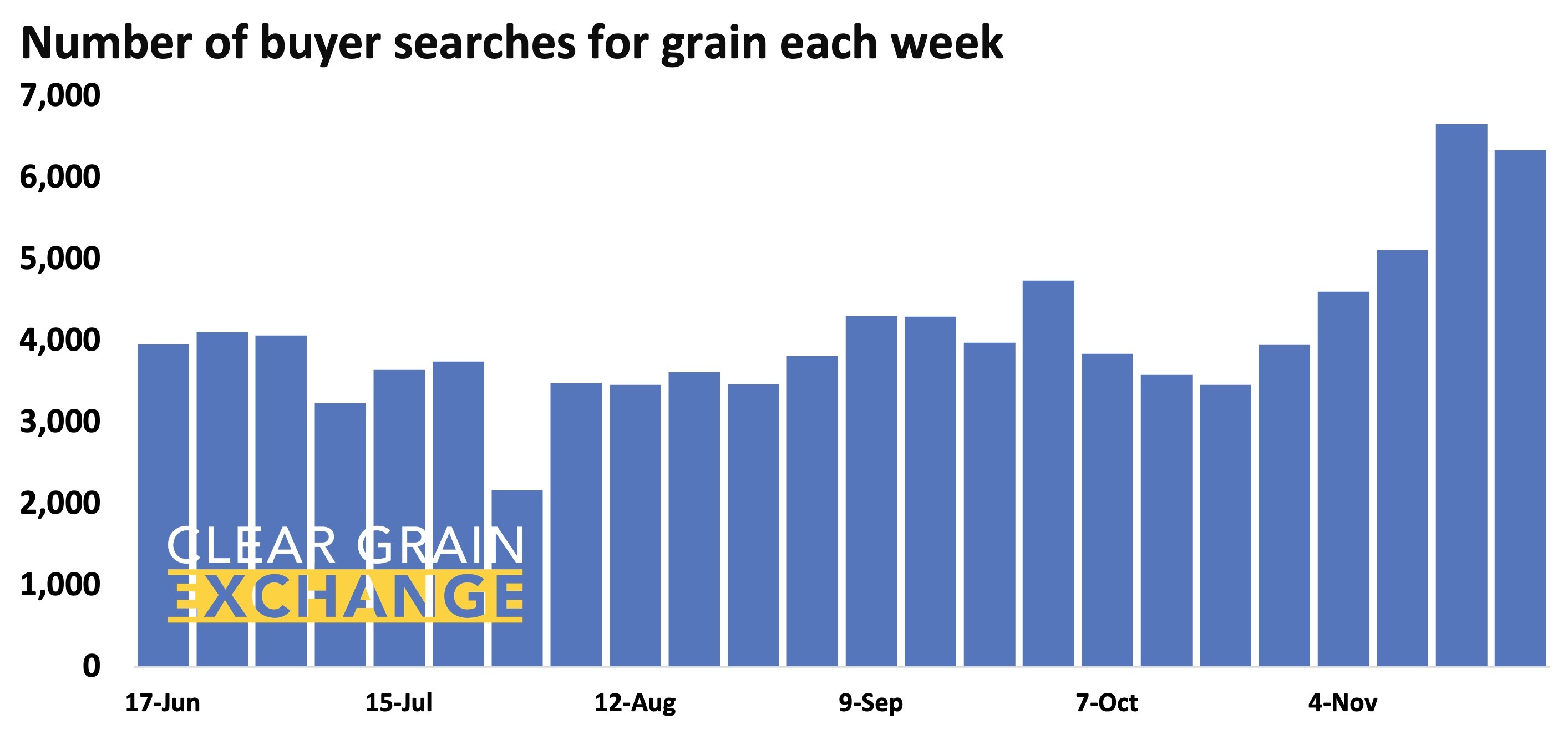 A total of 120 buyers made 6330 searches for grain listed for sale on Clear Grain Exchange (CGX) just last week.