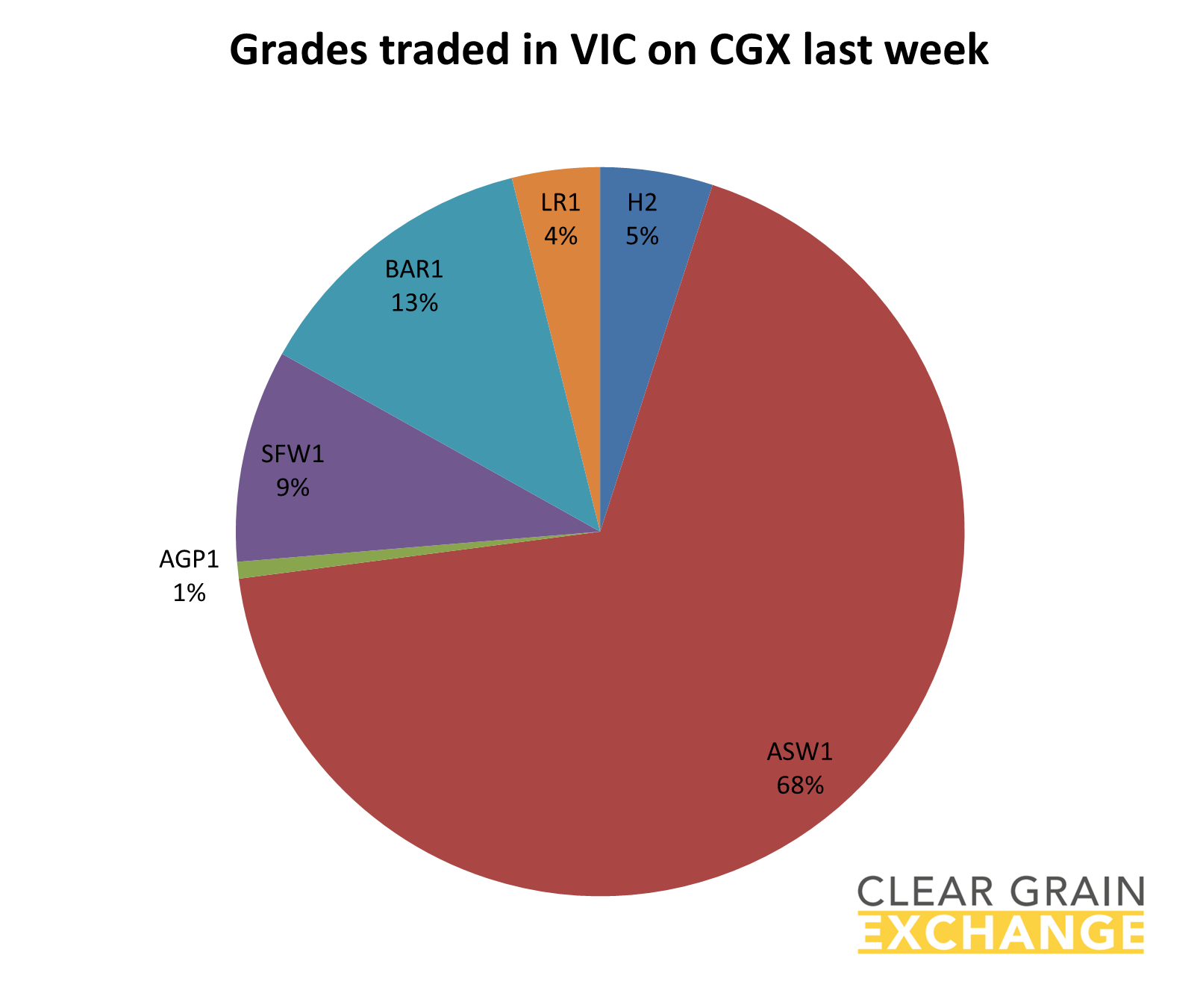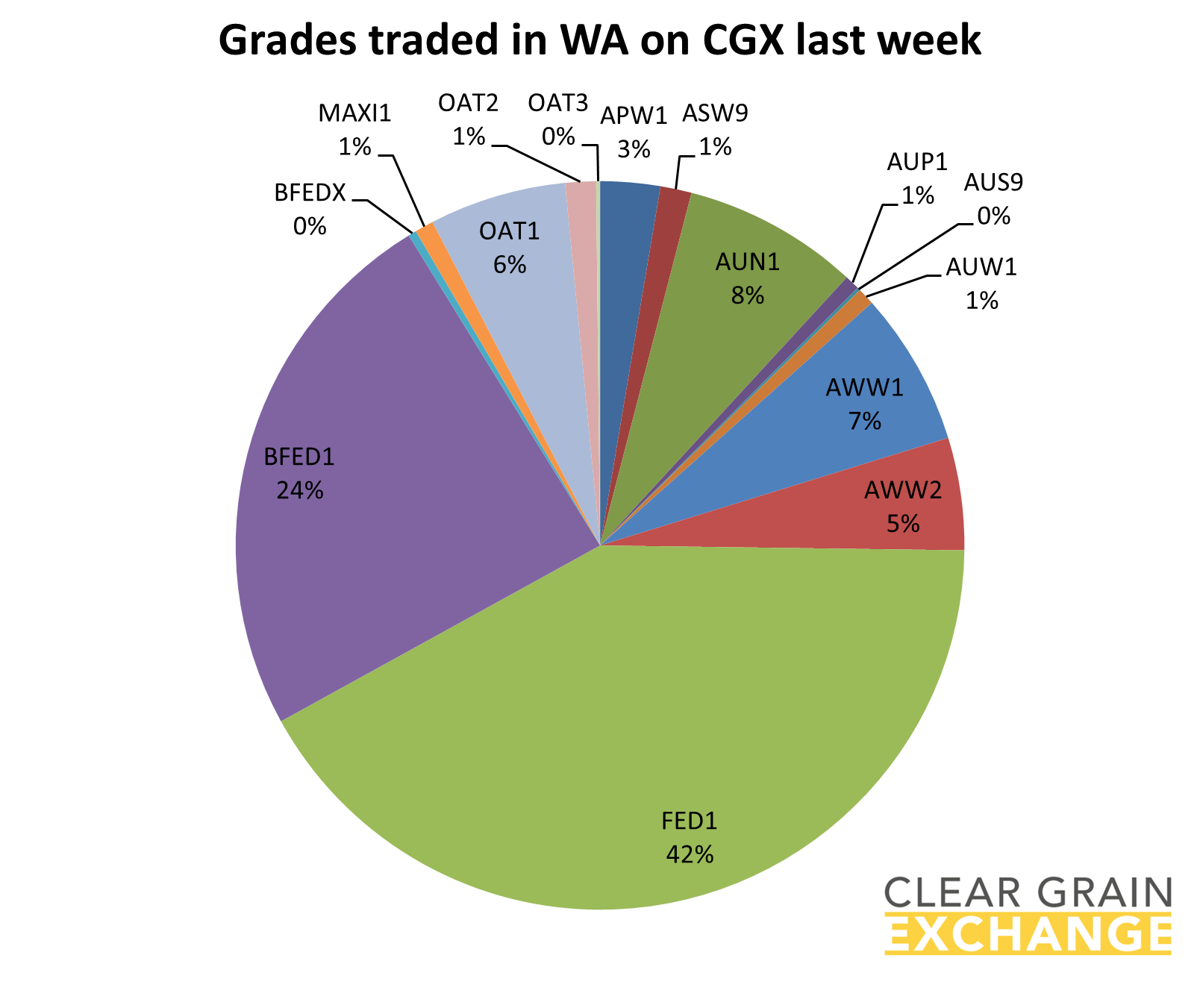 29 buyers met grower offer prices to purchase 31 grades - Wheat, barley, chickpeas, faba beans, lentils, oats and peas traded in 13 port zones.