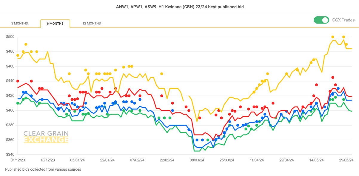 Australian grain prices continued their broad strength early in the week as buyers bid up to meet grower offer prices, before published bids softened at the end of the week.