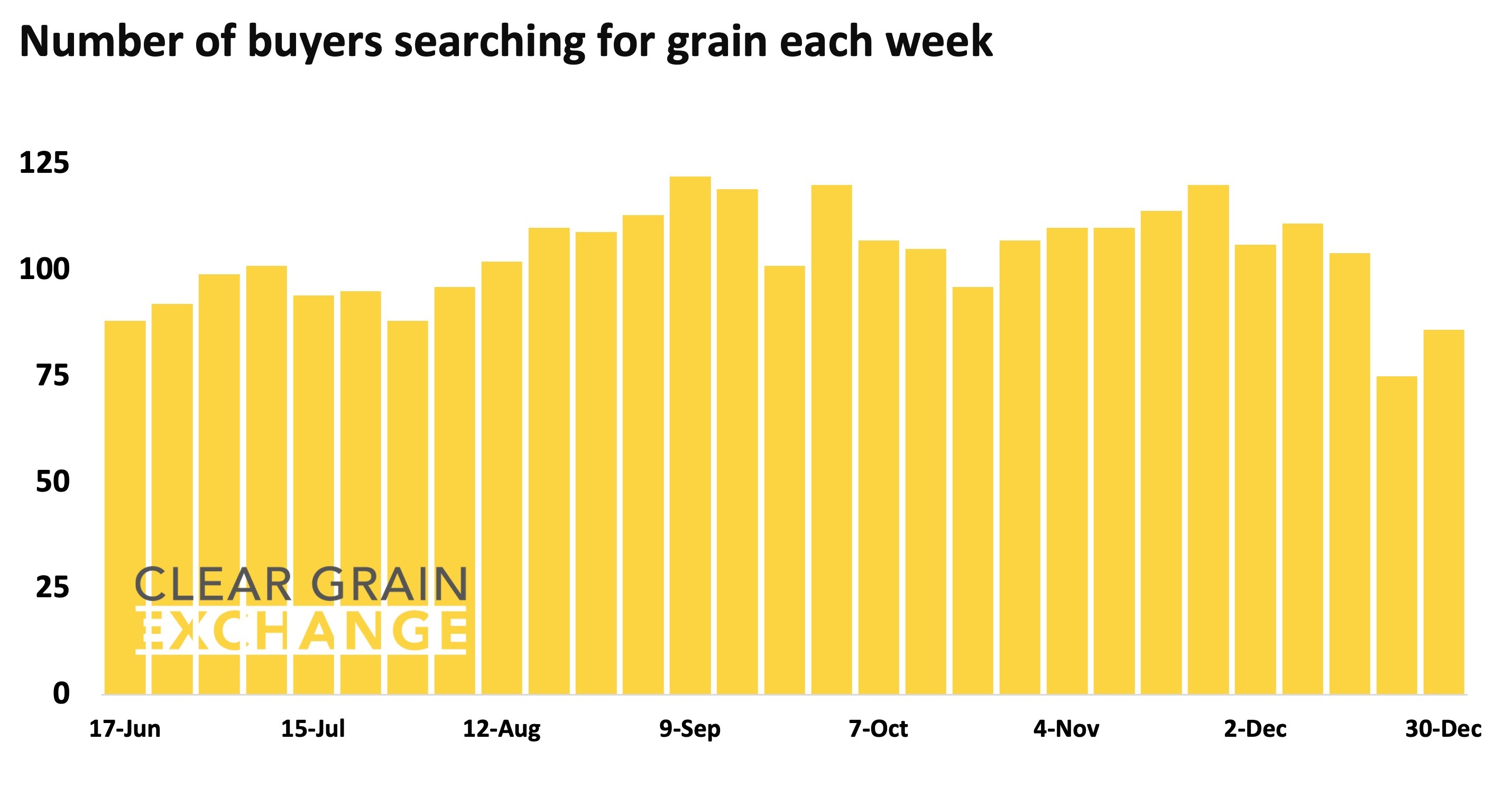 A total of 100 buyers made 5,891 searches for grain listed for sale on Clear Grain Exchange (CGX) over the last two weeks.