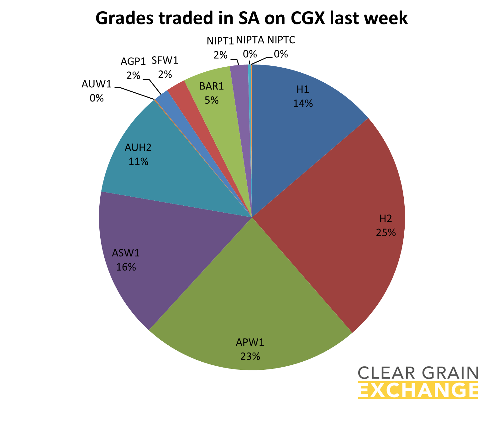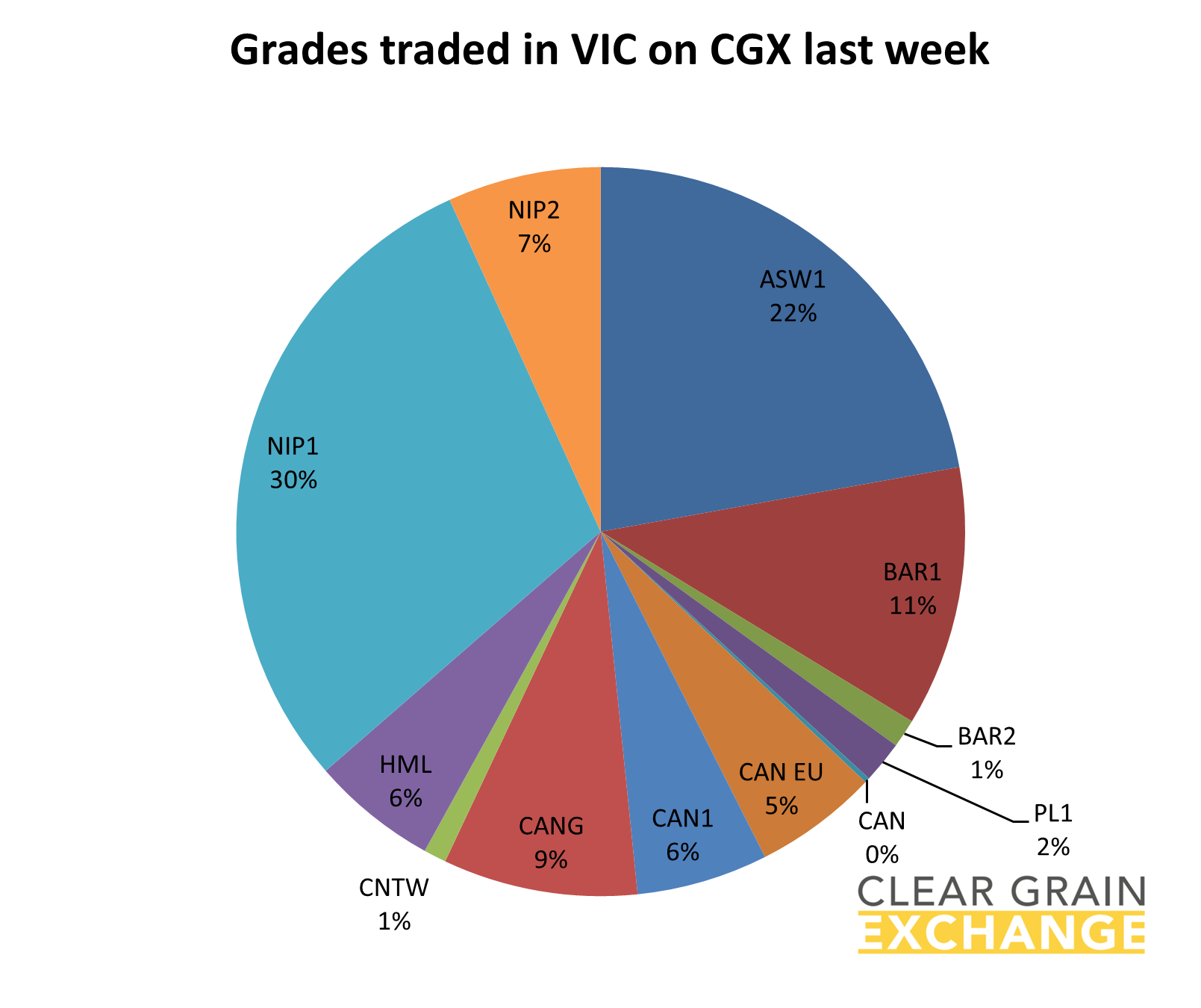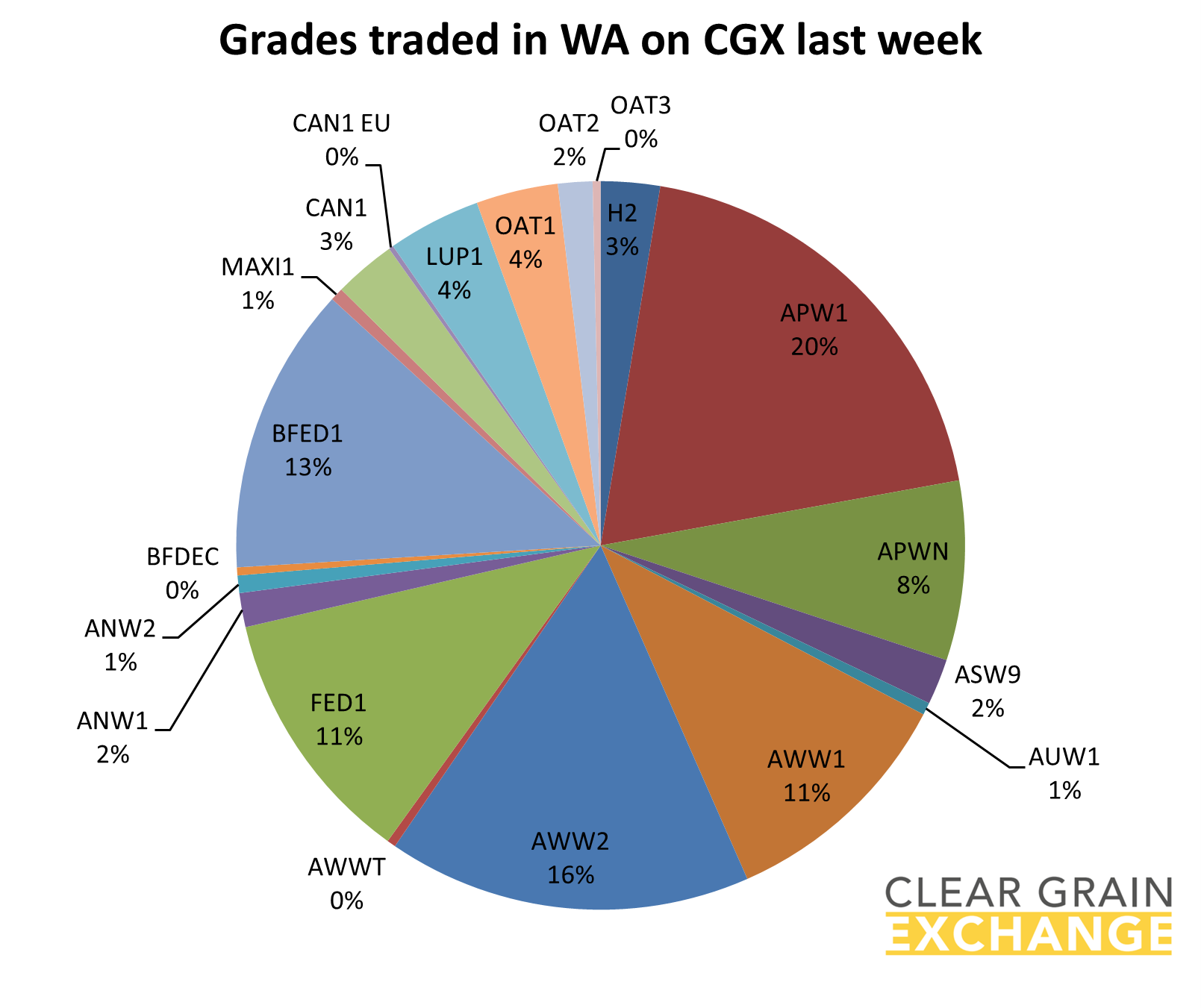 There is demand for all grades of grain with 42 different grades trading through CGX last week in 15 port zones across Australia.