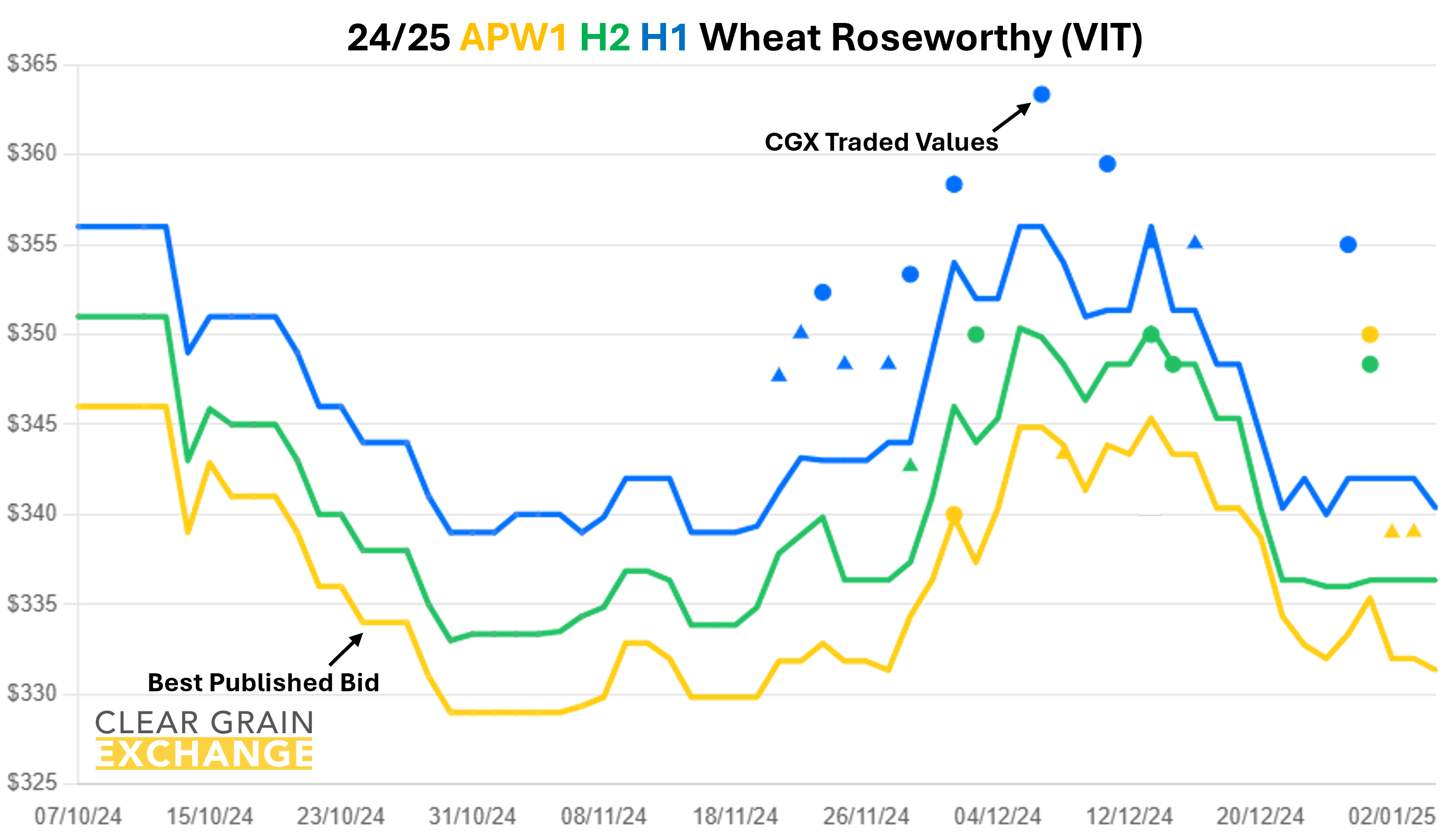 Thankfully over the festive period the rush of growers selling into bids appeared to have slowed and growers were actively offering their grain for sale at a price.