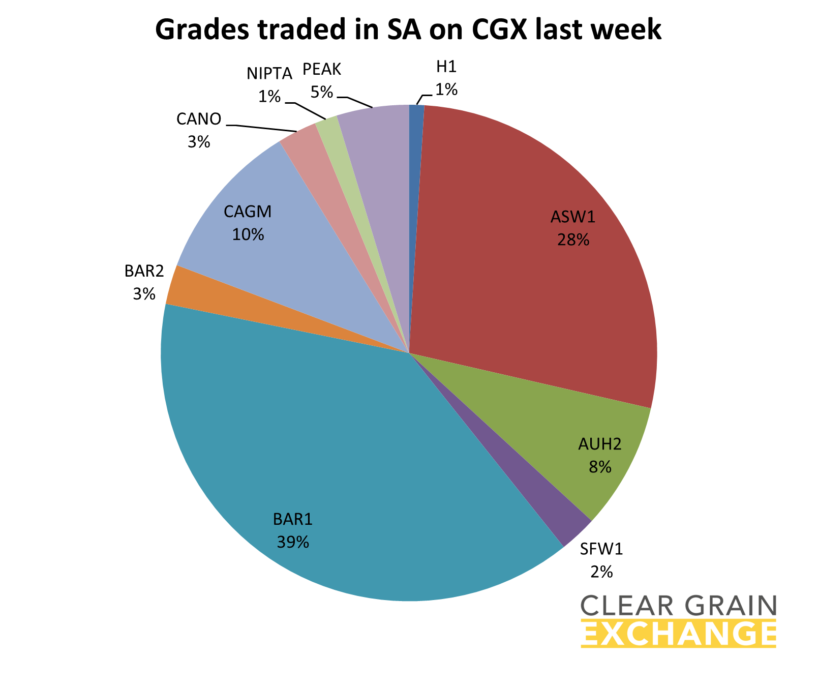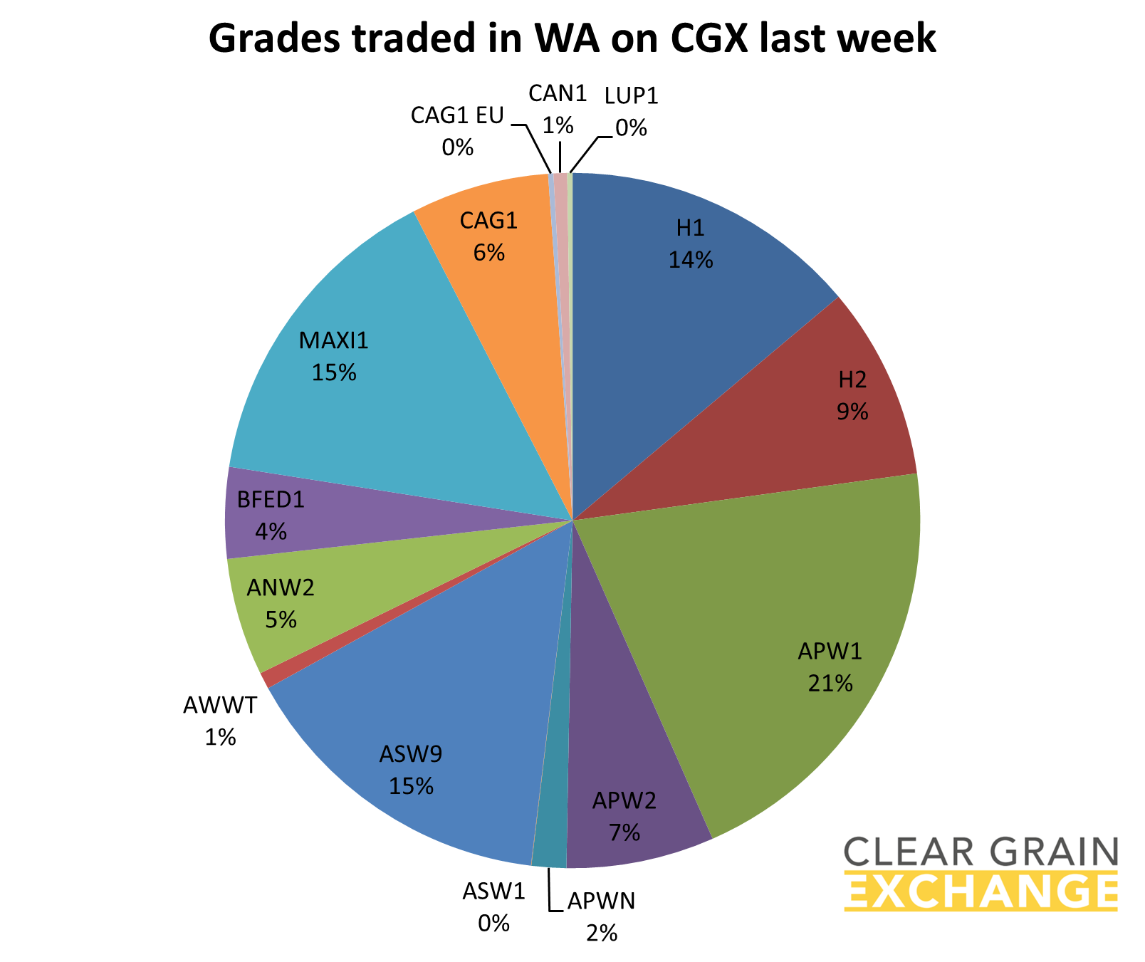 All wheat grades from milling to feed were sought after last week with 24 buyers purchasing 13 wheat grades around the country making up 63% of all grain traded.