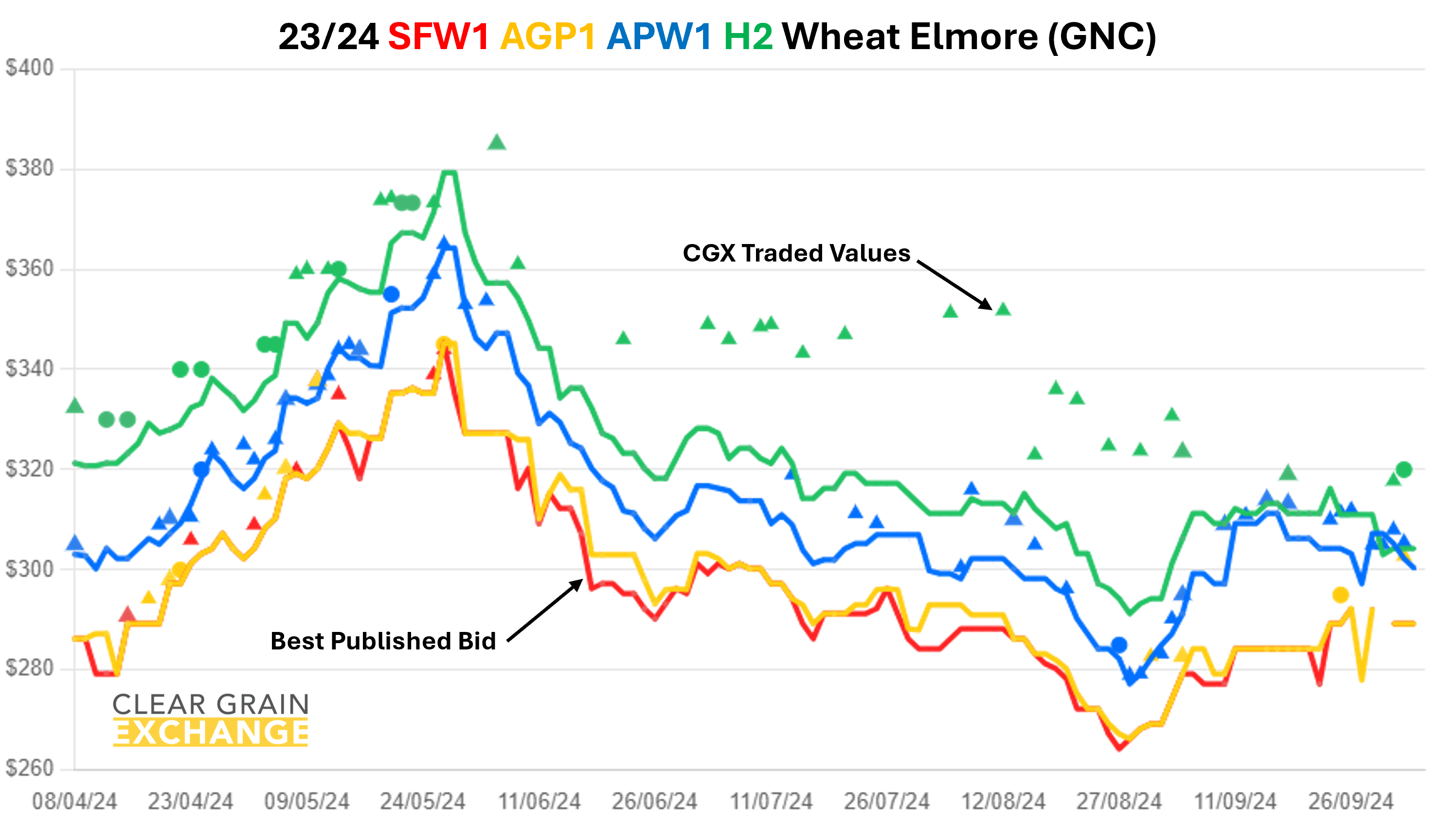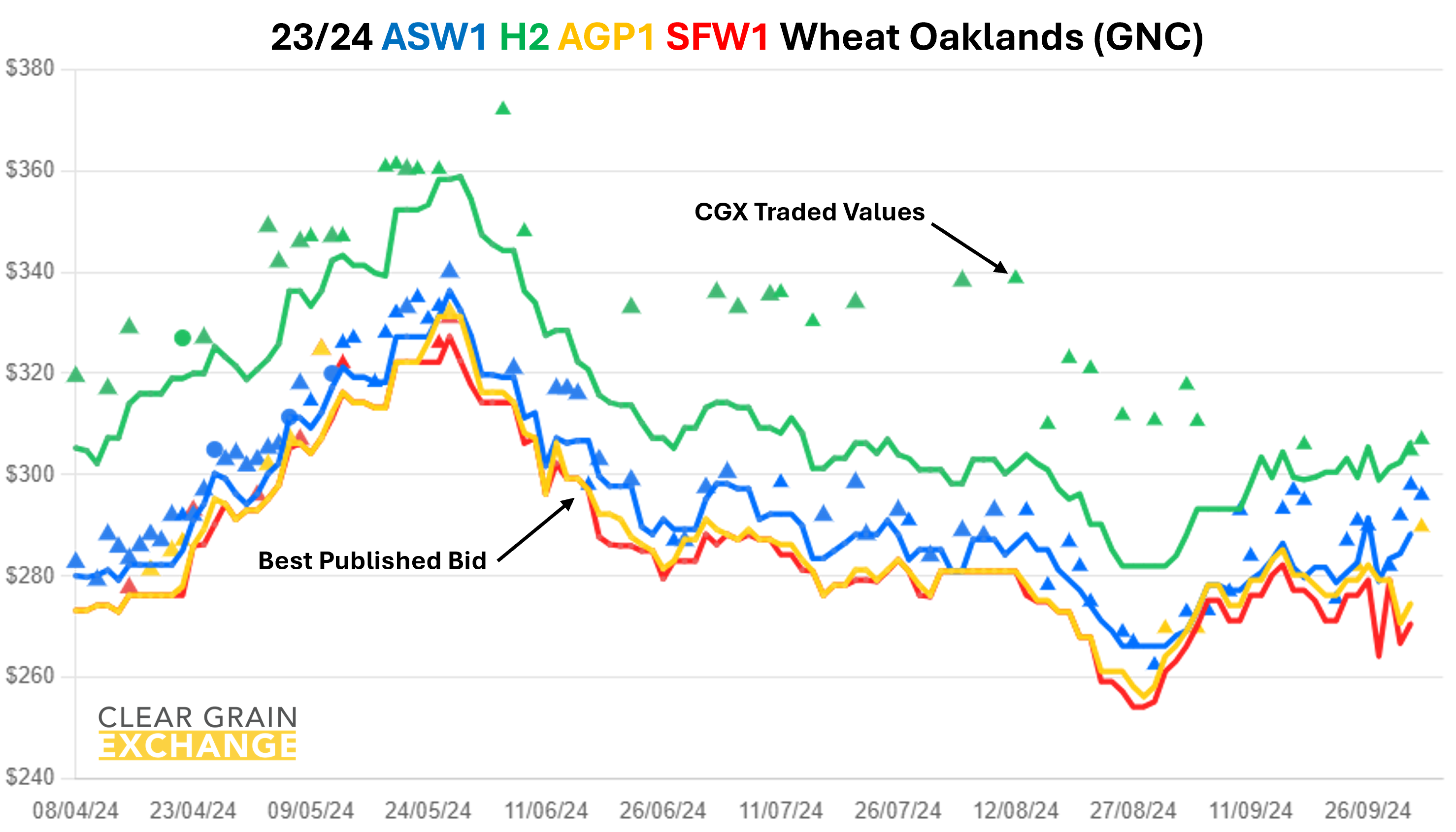 Canola, feed barley, and major wheat grades such as ASW1 and APW1 are the 24/25 season grades growers are most interested in offering for sale.