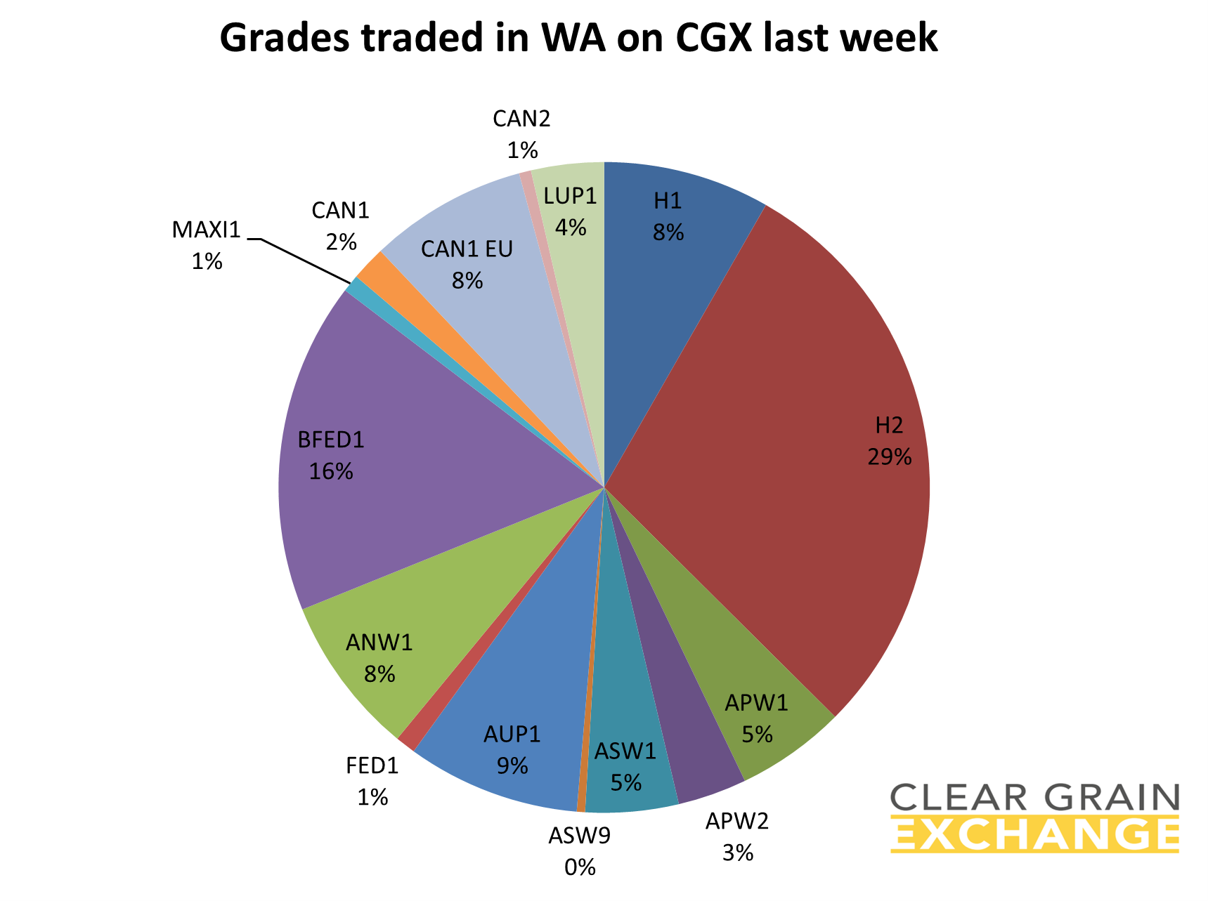 In the west, H2 wheat traded 29% of volume while BFED1 barley made up 16% and canola grades made up 11%. 15 grades in total traded. H1 was $415/t and H2 $405/t in Albany while ASW1 was $385/t Kwinana. BFED1 barley was trading $340/t Kwinana, canola was $780/t + oil and lupins were $590/t Kwinana.