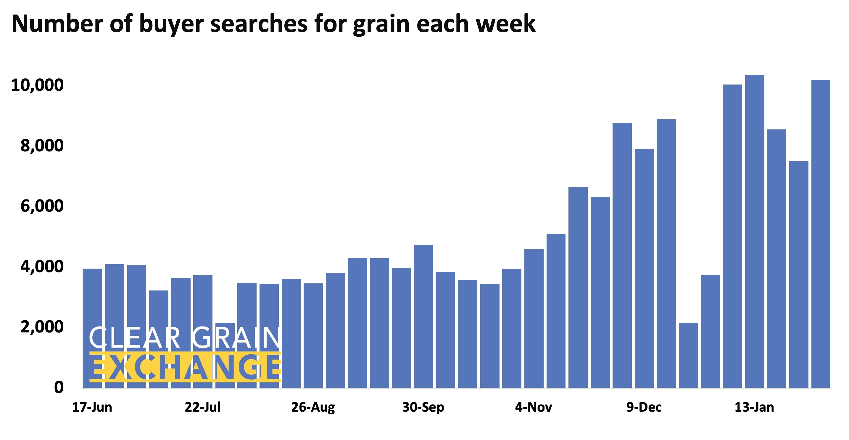Last week 41 buyers purchased grain through Clear Grain Exchange (CGX) and a total of 104 buyers made 10,202 searches for grain listed for sale on the exchange.