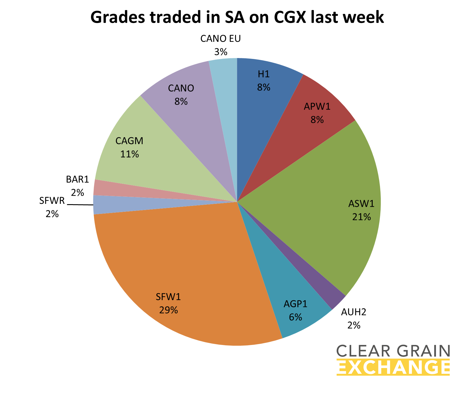 6 commodities traded - wheat, barley, canola, oats, lupins, sorghum