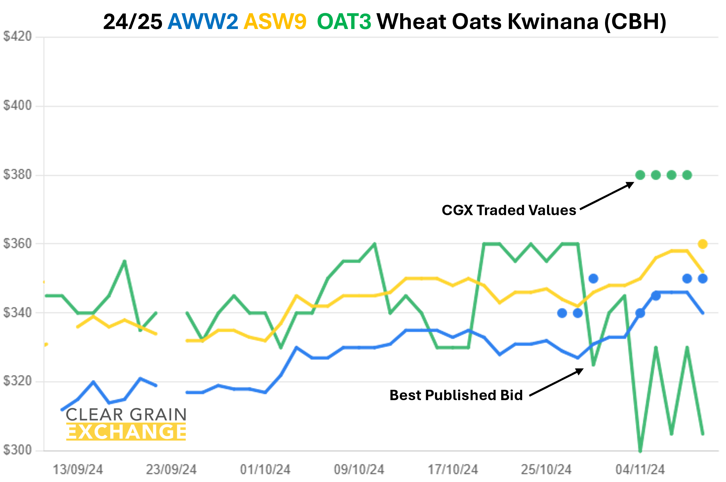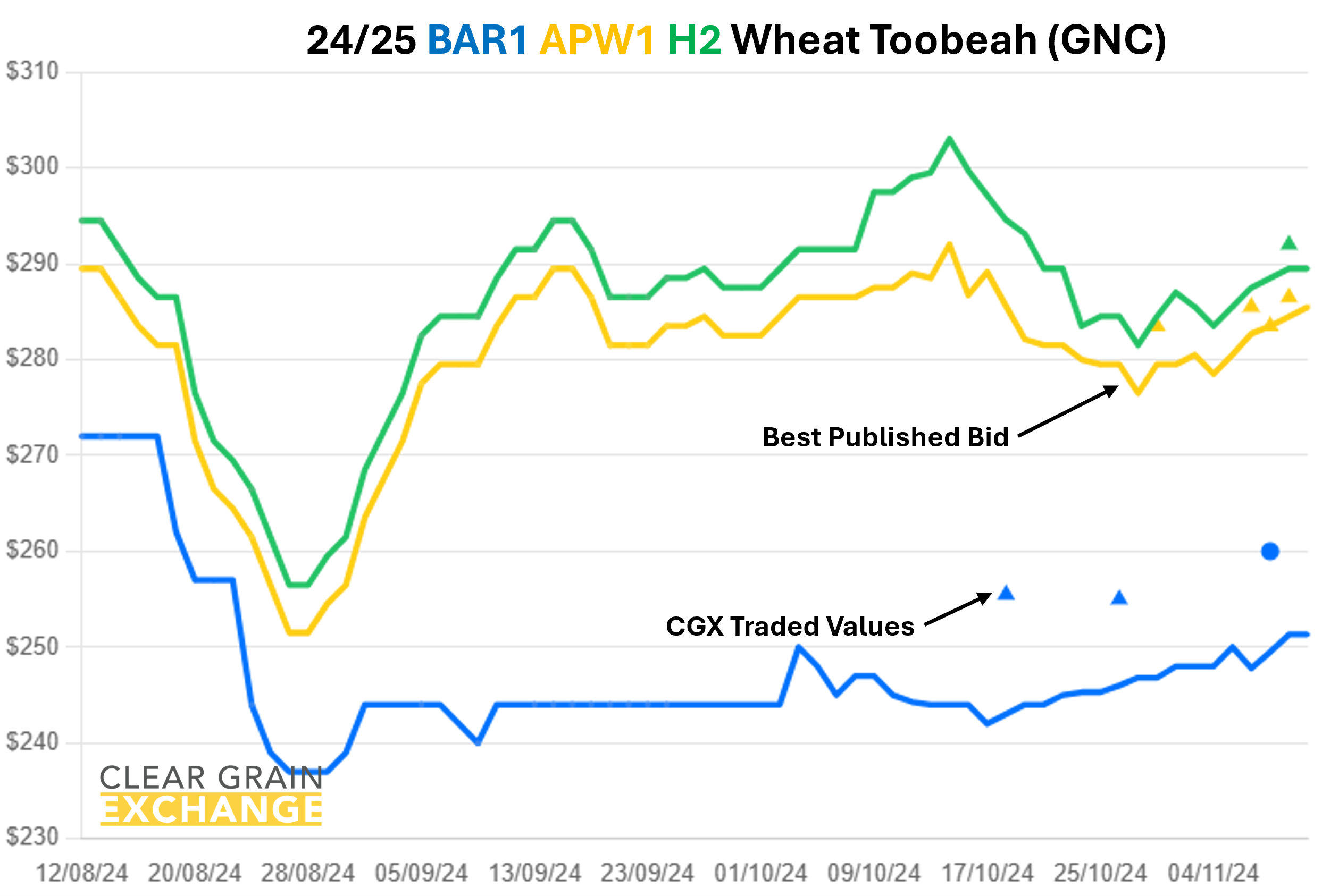 Growers can offer their grain up for sale at a price, and/or check Clear Grain Exchange (CGX) which has had firm bids that growers can sell into above cash at site prices.