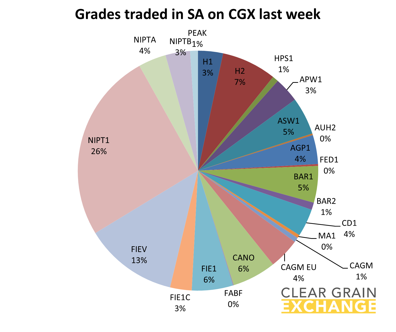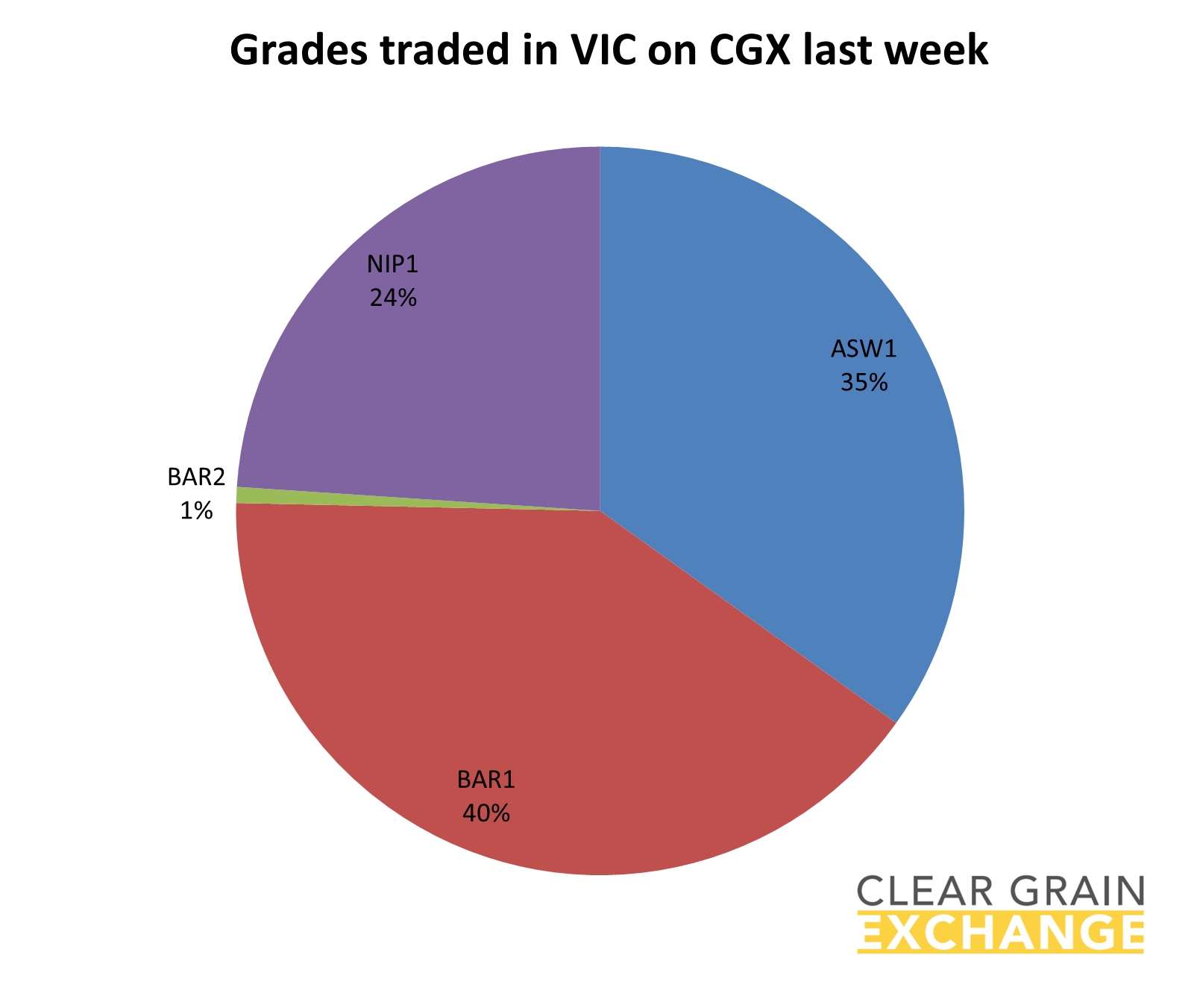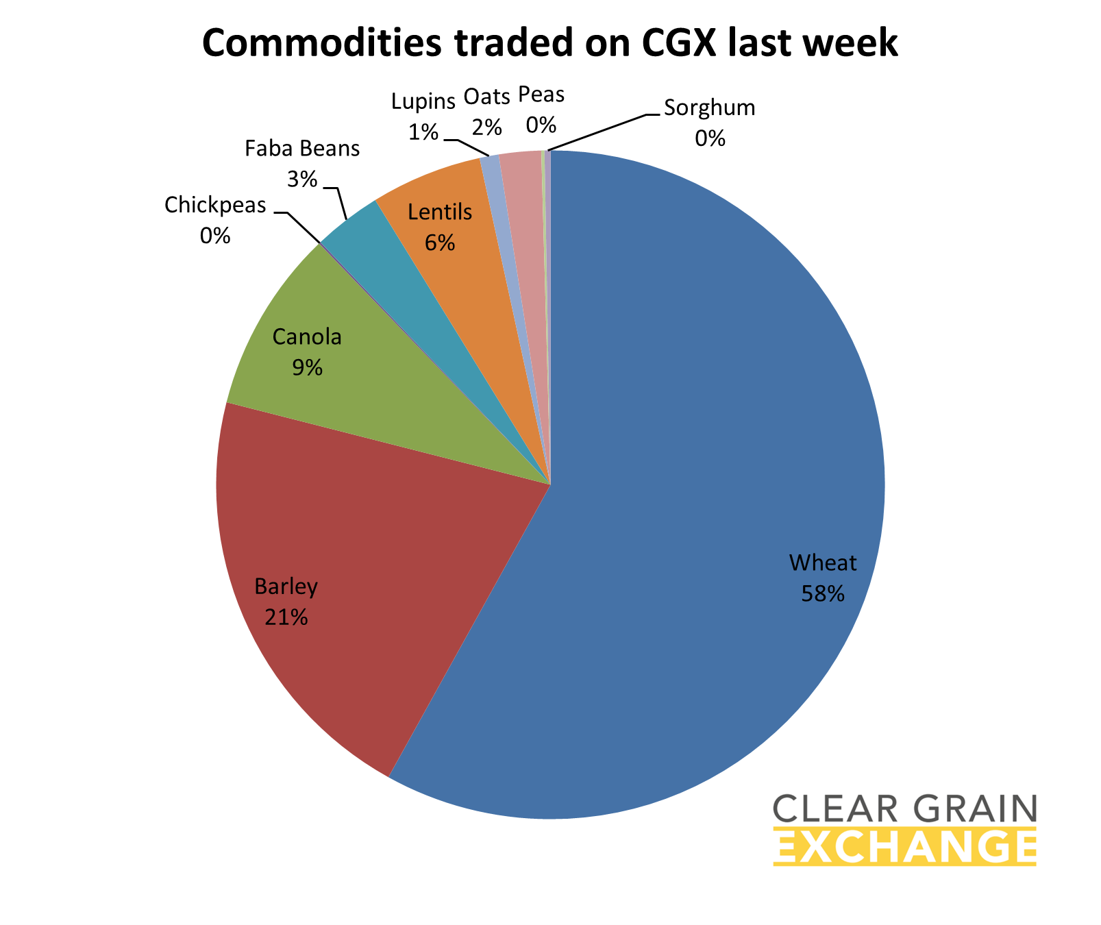 Demand was wide across a breadth of grades and grains with 49 grades of wheat, barley, canola, chickpeas, faba beans, lentils, lupins, oats, peas and sorghum trading through the exchange at grower target prices.