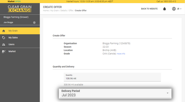 For growers who want to defer delivery and payment of their grain, you can offer grain at the price you want for delivery in future months. For example, many growers use the future delivery period on CGX to offer warehoused grain for sale with delivery in July. This allows growers to better manage cashflow, price risk, and benefit from any carry that may be paid in the market.