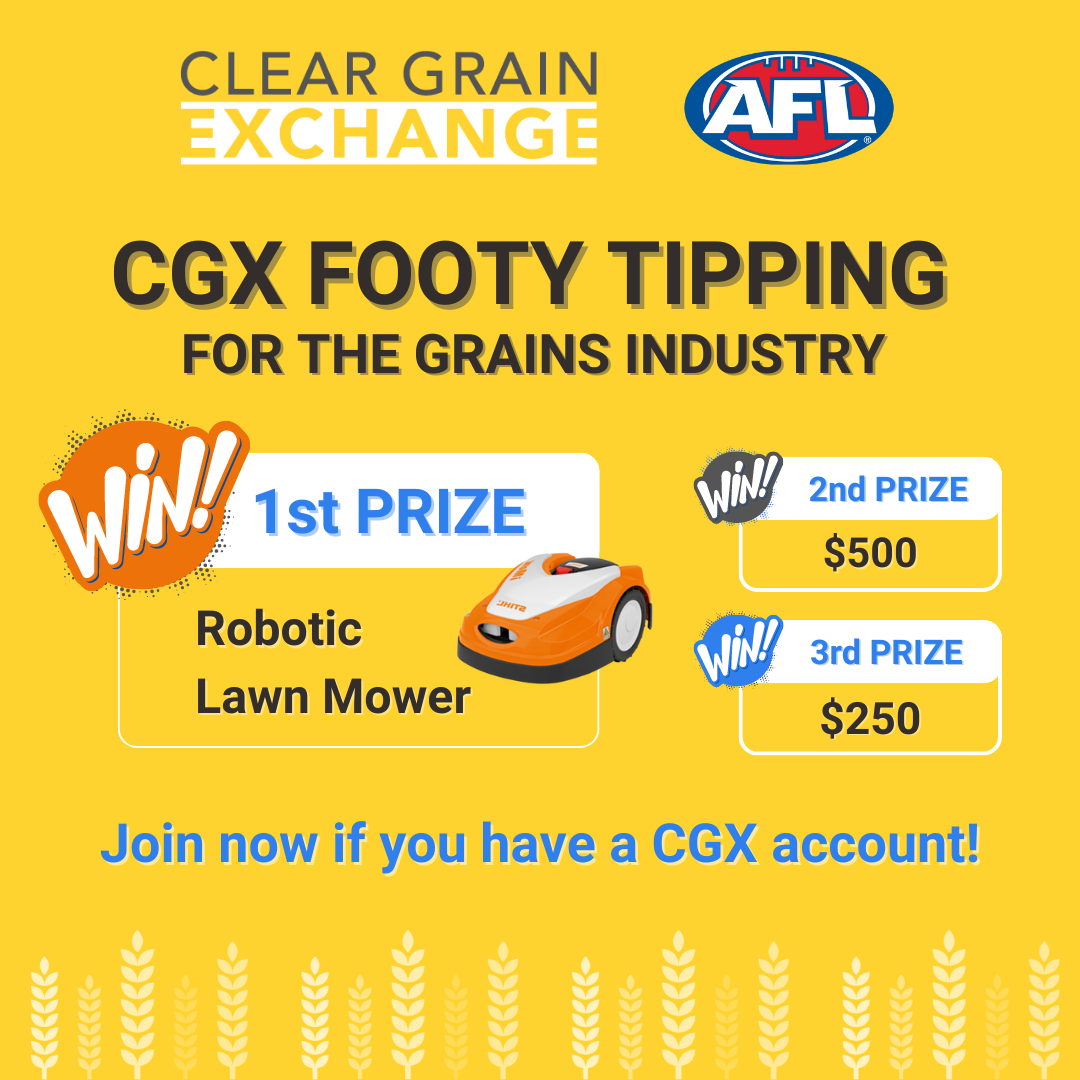 The first AFL game is not far away make sure you register and get your tips in! Fun prizes for the winners + random weekly prizes to be won You just need a CGX account to join Get involved and be the best tipper in the Australian grain industry! #yourgrainyourfooty #yourCGXfootytipping #CGXIndependentAndSecure #CGXAFL