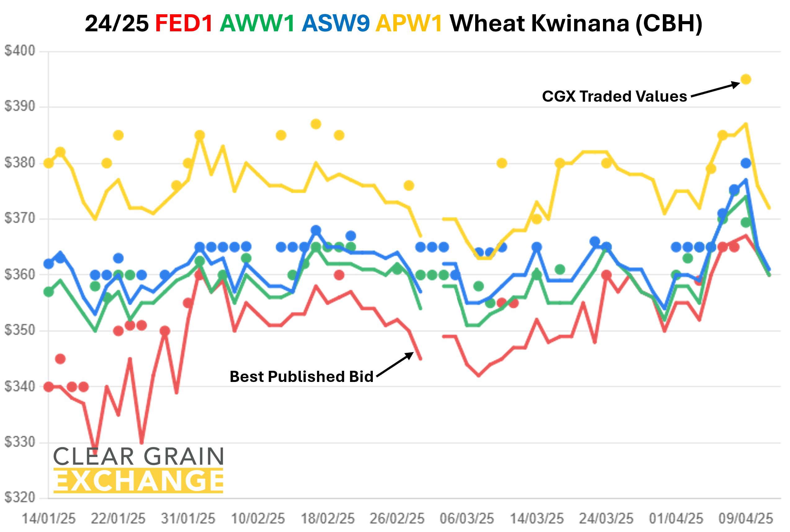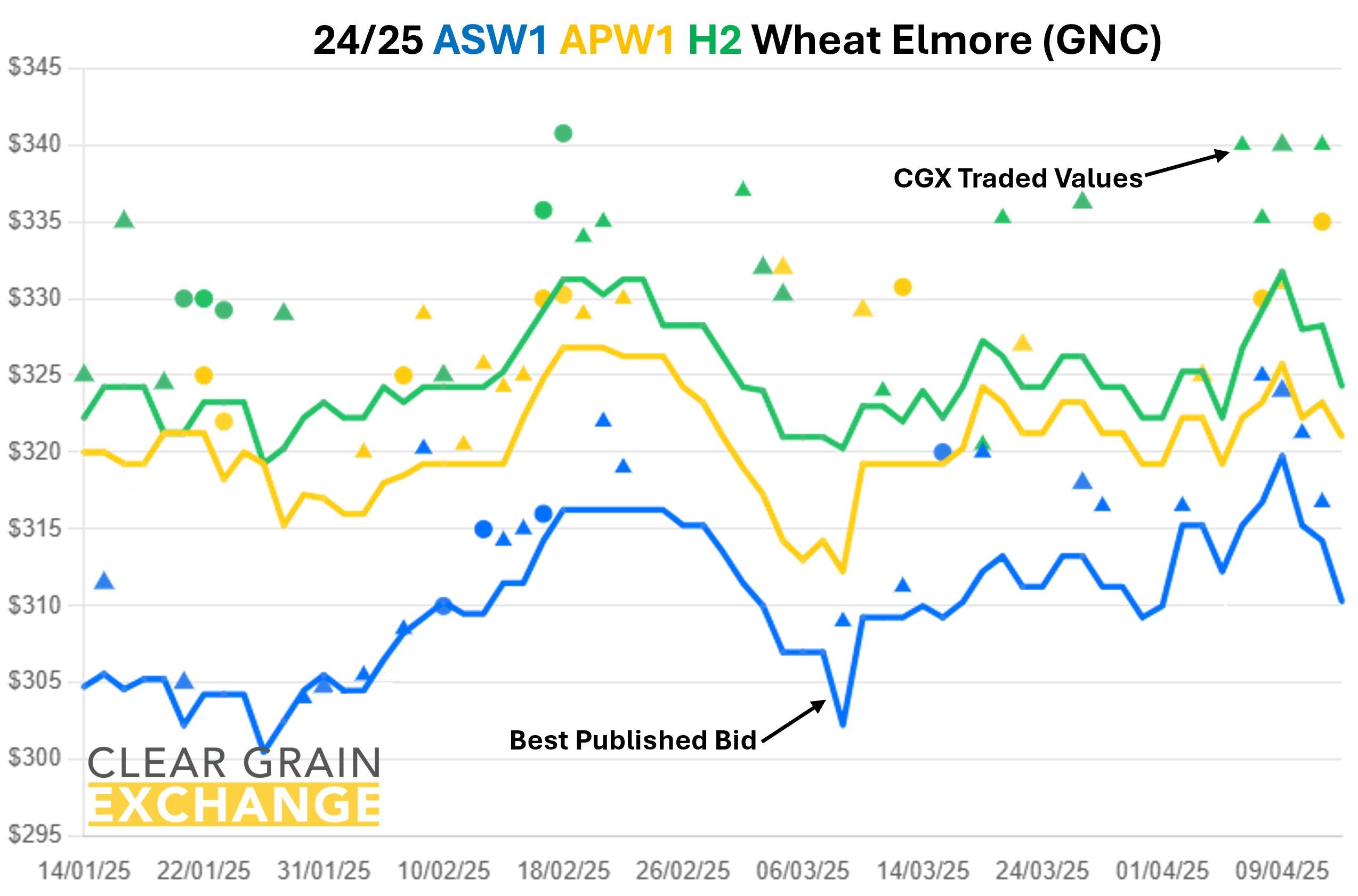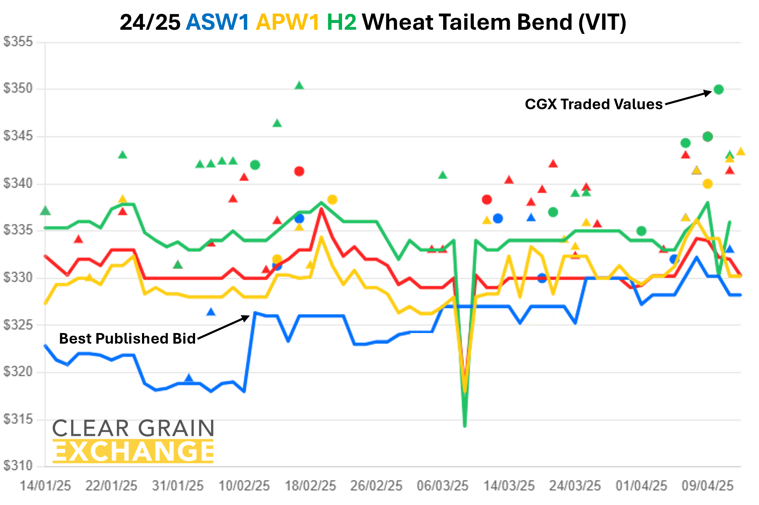 Prices traded on Clear Grain Exchange regularly trade well above best published bids as buyers bid up to secure the grain they can see offered for sale.