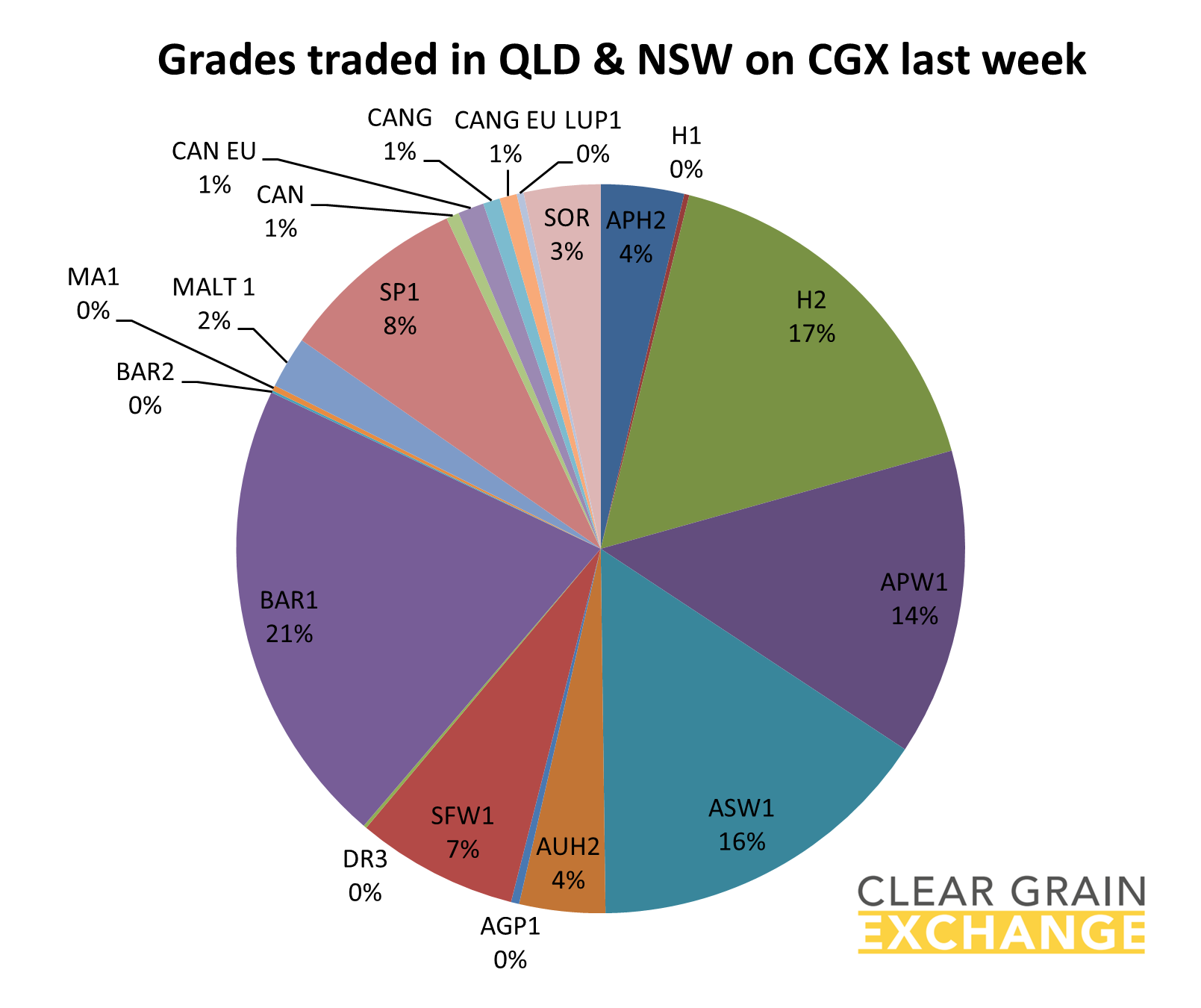 706 different sellers sold 49 grades of wheat, barley, canola, faba beans, lentils, lupins, oats and sorghum at their target prices across 1,174 transactions through Clear Grain Exchange and igrainX last week.